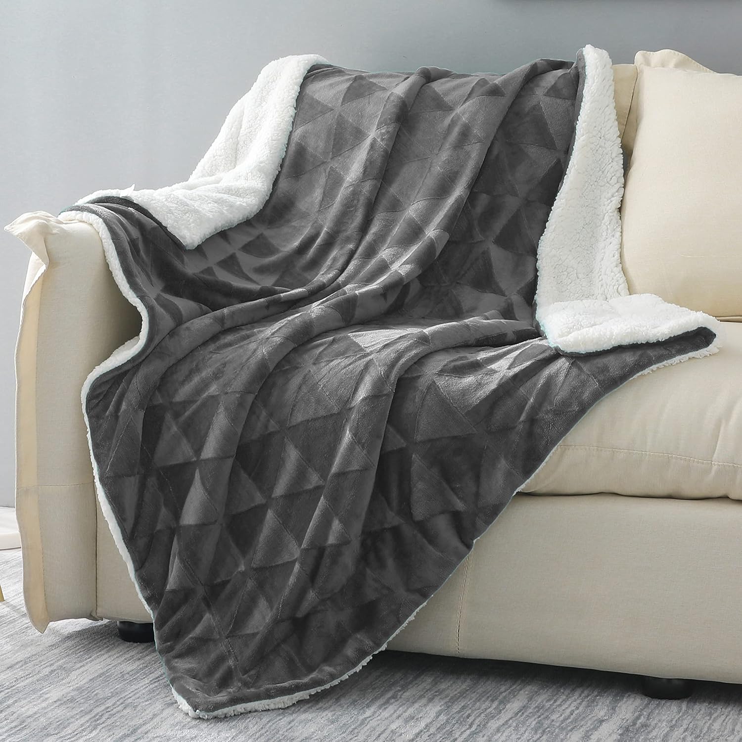 Exclusivo Mezcla Sherpa Fleece Throw Blanket, Reversible Velvet Plush Throw and Blanket Ultra Soft and Warm, Throws for Sofa Couch Bed, 127 x 178 CM, Dark Grey Blanket