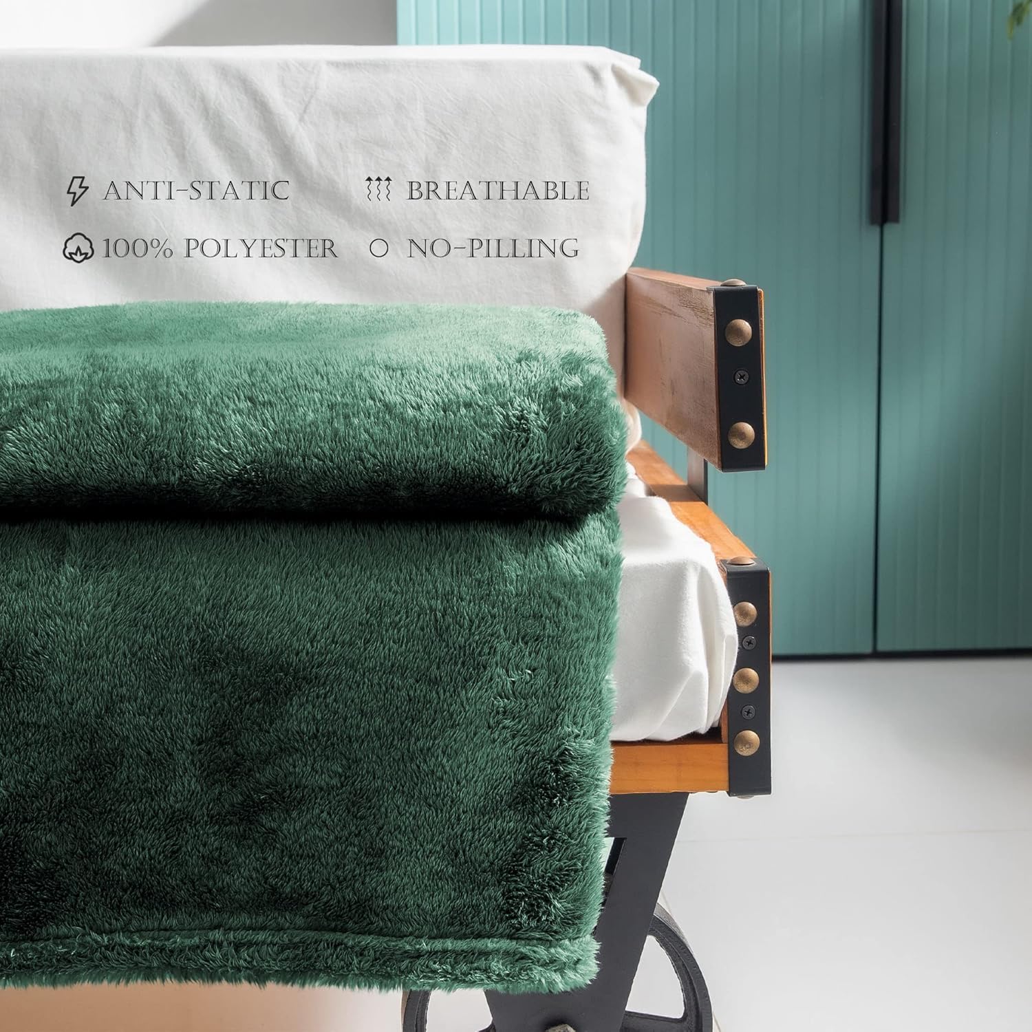 Exclusivo Mezcla Throw Size Fleece Throw Blanket, 127×178 CM Large Fuzzy Sofa Throws, Soft Velvet Plush Blanket for Sofa, Forest Green Blanket