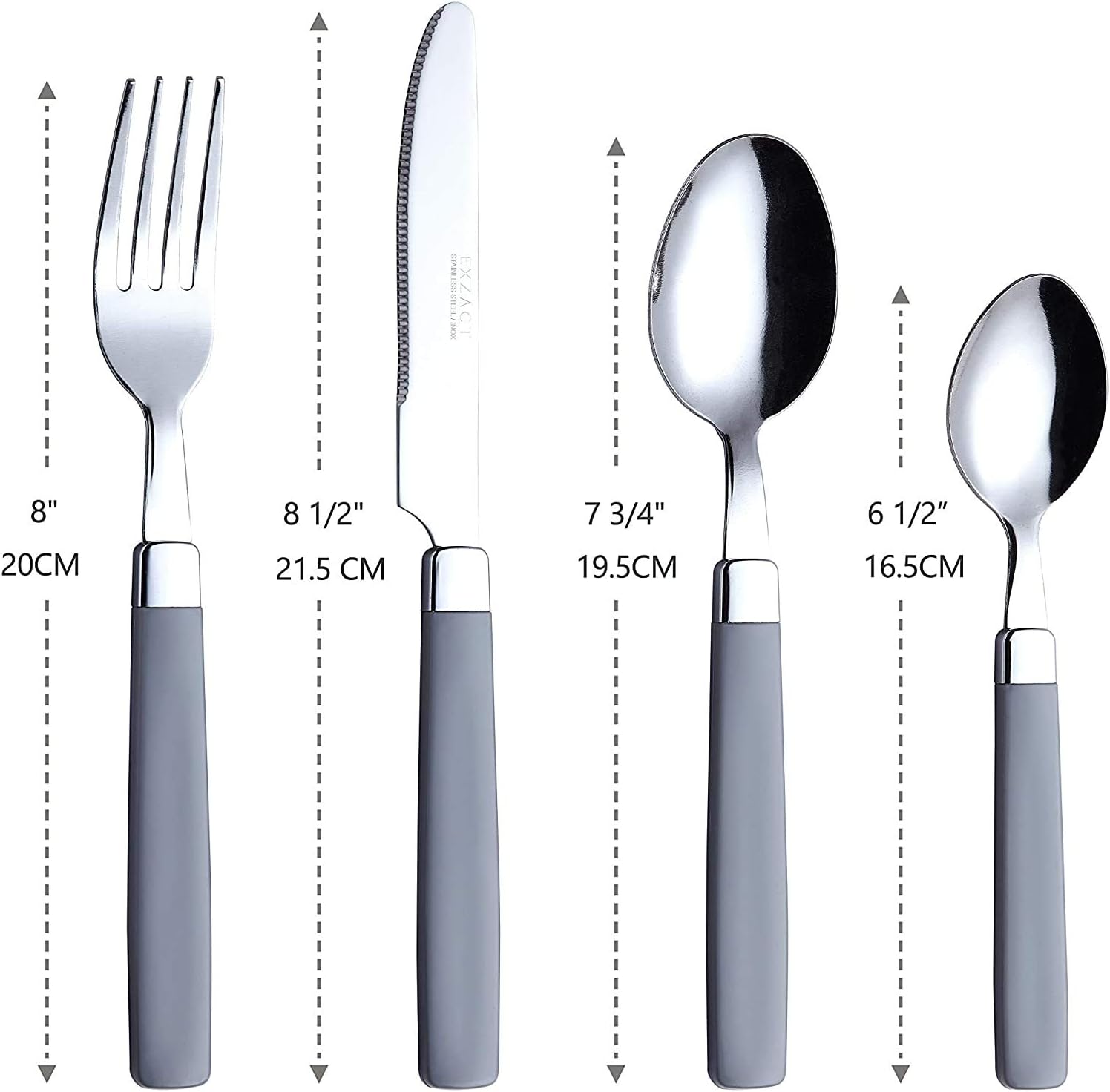 Be the first to review “EXZACT Cutlery Set 16pcs Stainless Steel – Coloured Handles – 4 x Forks, 4 x Knives, 4 x Table Spoons, 4 x Tea Spoons – WF23 Grey”