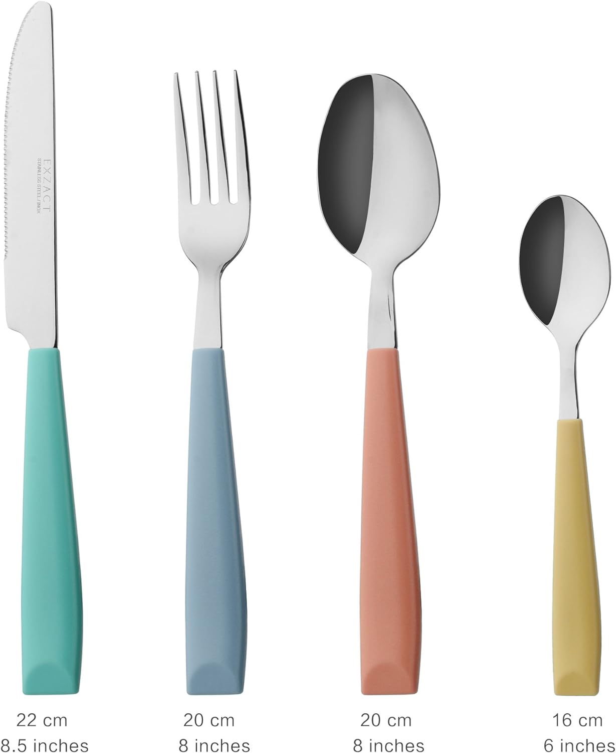 EXZACT WF232W-MIX 24 PCS Stainless Steel Silverware / Flatware Set – With Vibrant Colour Wide Handles (Turquoise / Light Blue / Warm Orange / Pastel Yellow)- For 6 Persons;
