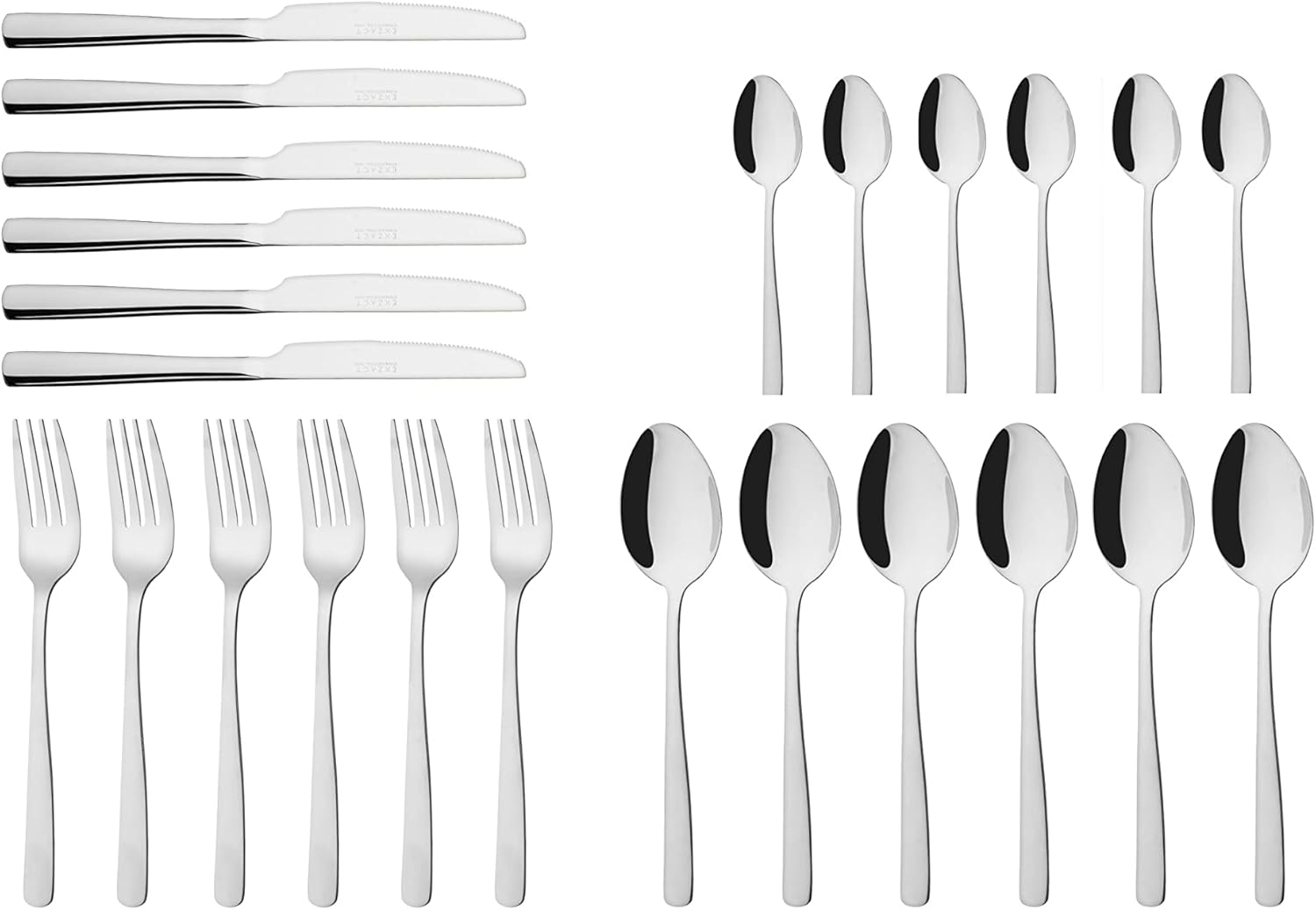 Including: 6 x Forks, 6 x Knives, 6 x Table Spoons, 6 x Tea Spoons Dishwasher Safe
