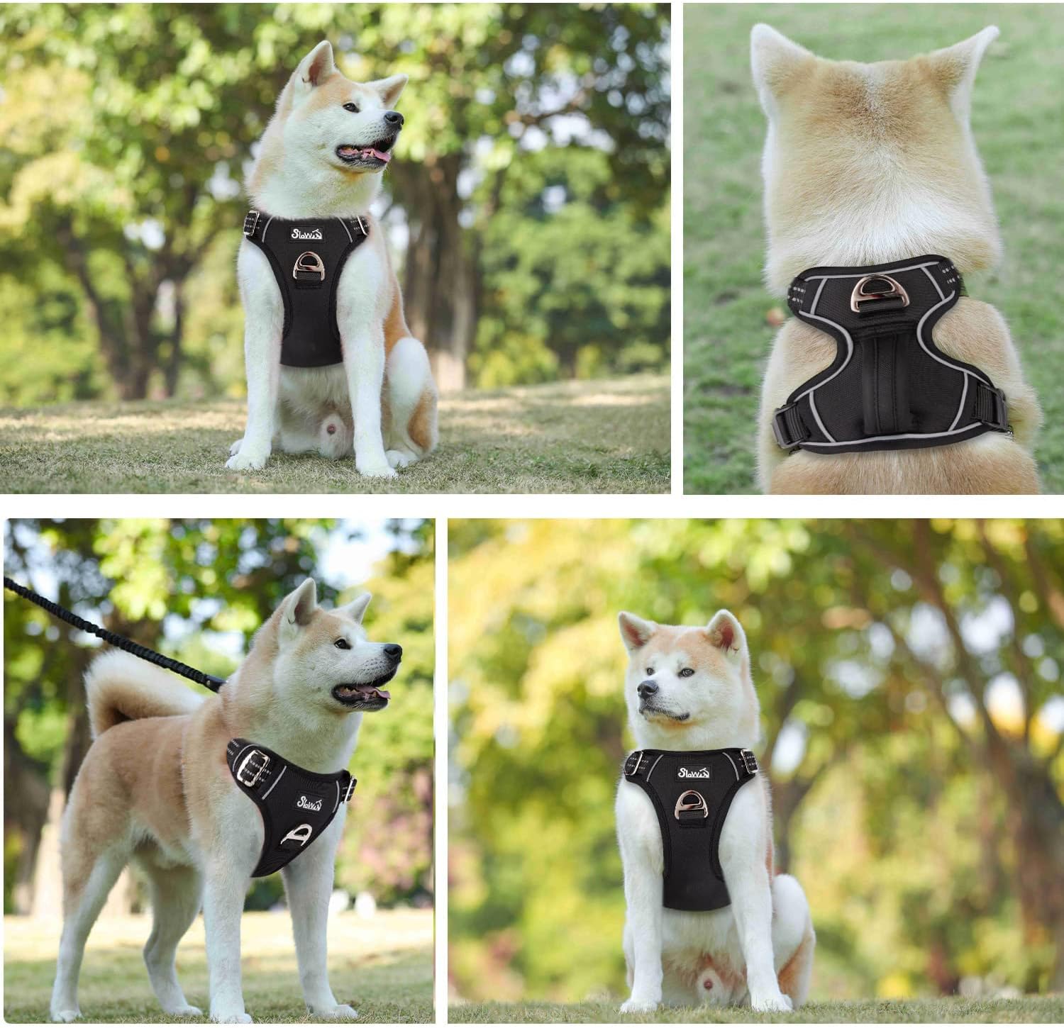 NO PULL WITH 2 HOOK LOOPS — Newly designed with 2 sturdy D rings on the dog safety vest for attaching the leash, our no pull dog harness is suitable for different occasions. Front clip for discouraging pulling and back for casual walking or running.