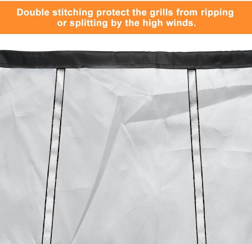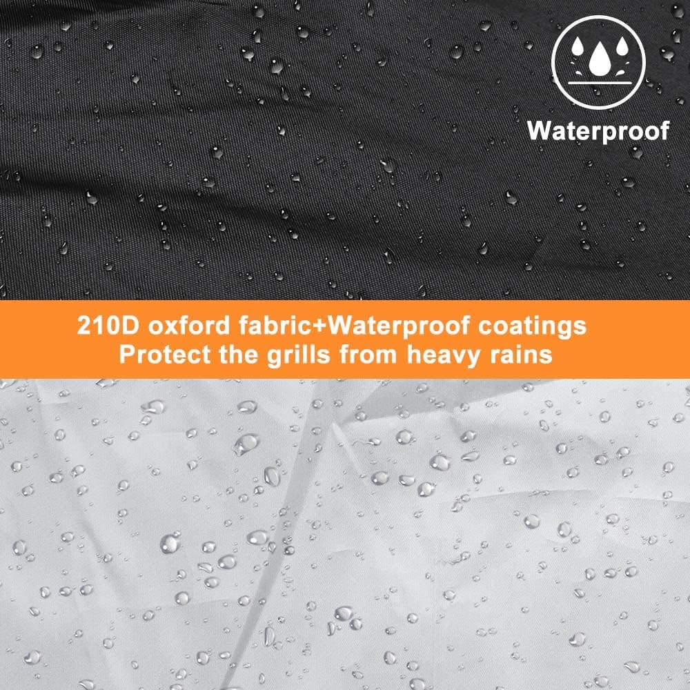 【Thick Material and Sturdy Sewing Process】The Barbecue Covers are made of 210D oxford fabric, the inner part is processed with UV-proof and waterproof coatings, and the seam part is stitched twice with high-density and quite sturdy; It protects your grill from scratch and dust, or ripped and split by wicked winds.