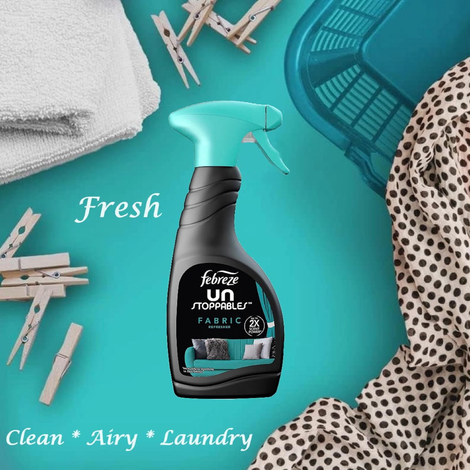 Unstoppables Fabric Freshener gives your soft surfaces a bold freshness. Indulge in an intense and long-lasting scent experience, thanks to the highly concentrated Unstoppables perfume. The Fresh scent is inspired by the ocean spray, invigorated with zesty green citrus fruits and has creamy sweet bottom notes. Our range of scent will add a luxurious touch of rejuvenating glory to your fabrics with natural characters.