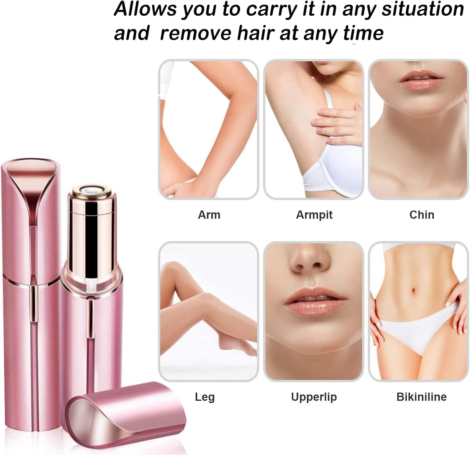Facial Hair Remover for Women & Eyebrow Trimmer, USB Rechargeable Facial Hair Removal, Flawless Hair Remover with LED Light Painless Hair Trimmer for Face & Body 2COLOR (Pink)