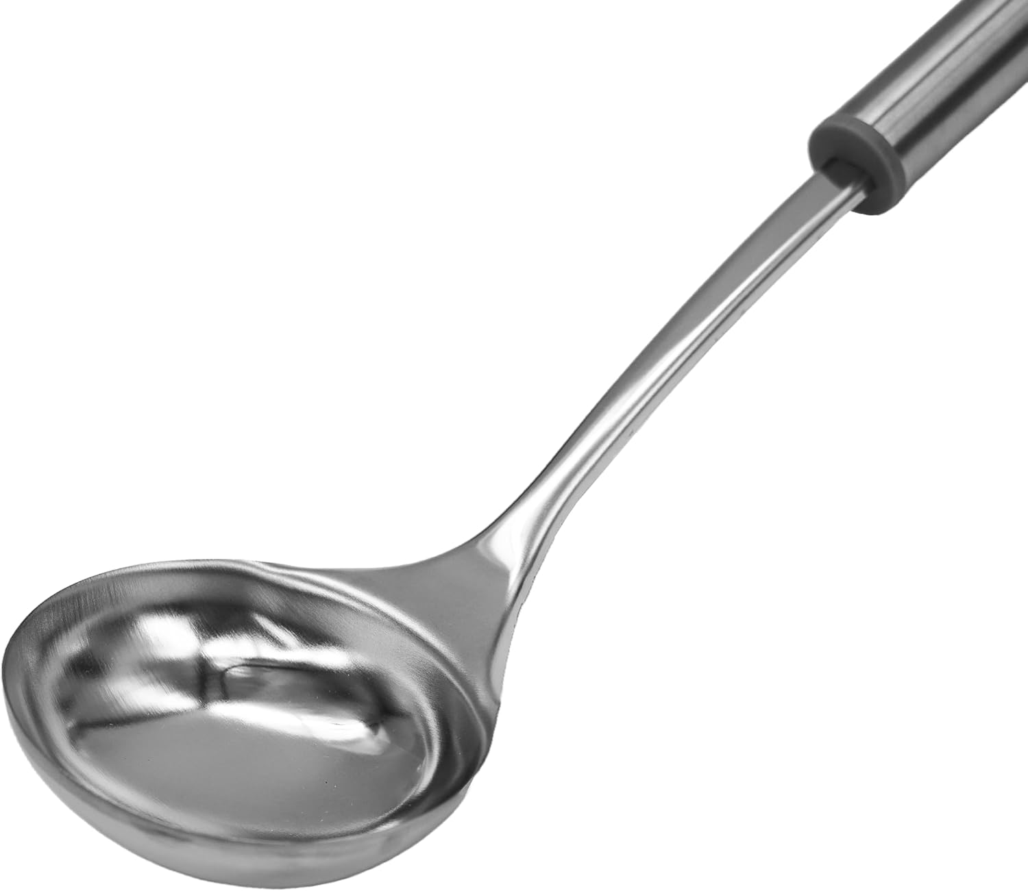 Fackelmann MODE Soup Ladle, Stirring & Serving Soup Spoon, Sauce Ladle, With Hanging Loop, Stainless Steel, 33x9x4.5cm, Grey & Silver