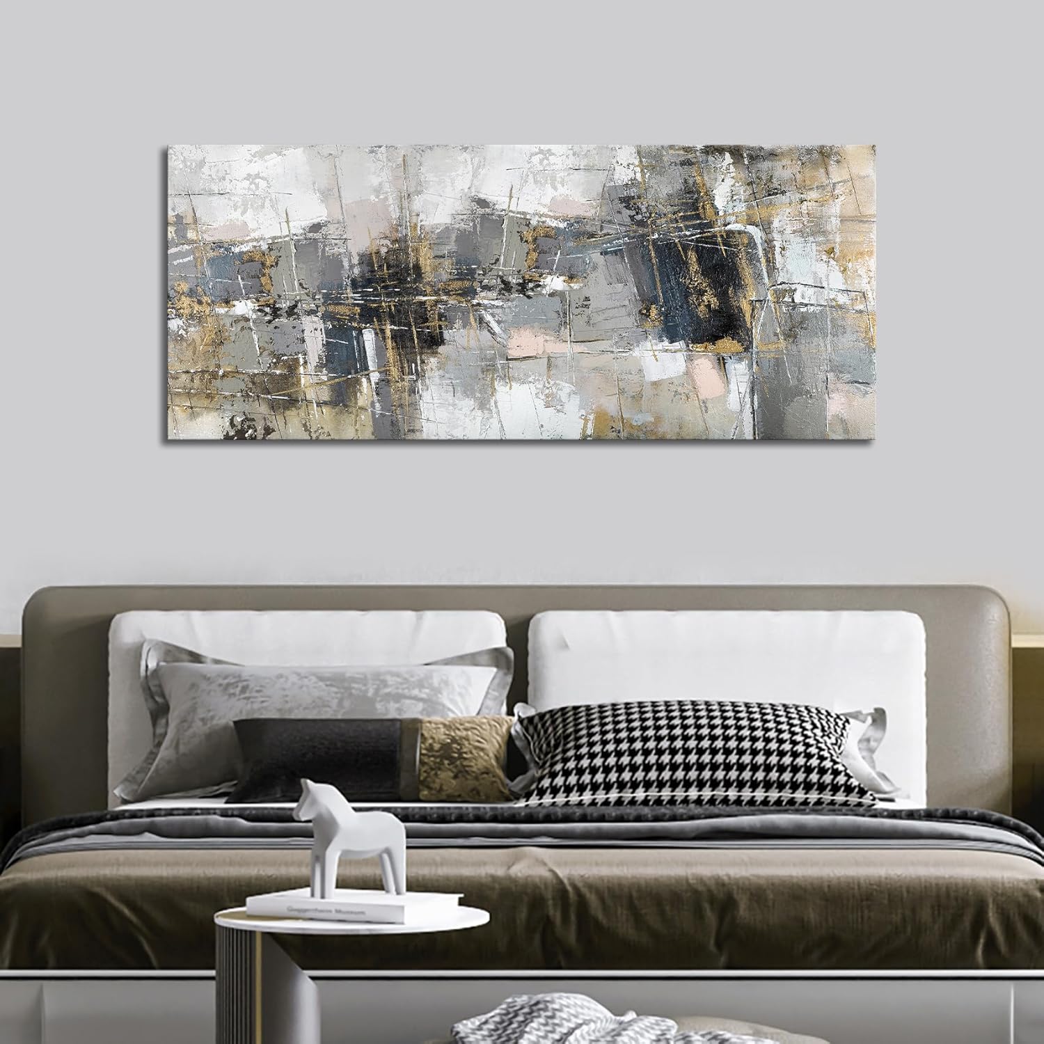 FajerminArt Large Framed Canvas Wall Art Abstract Grey Painting on Canvas Printed Picture Poster Wall Art for Living Room Bedroom Wall Decor Ready To Hang 20″ x 48″/ 120cm x 50cm