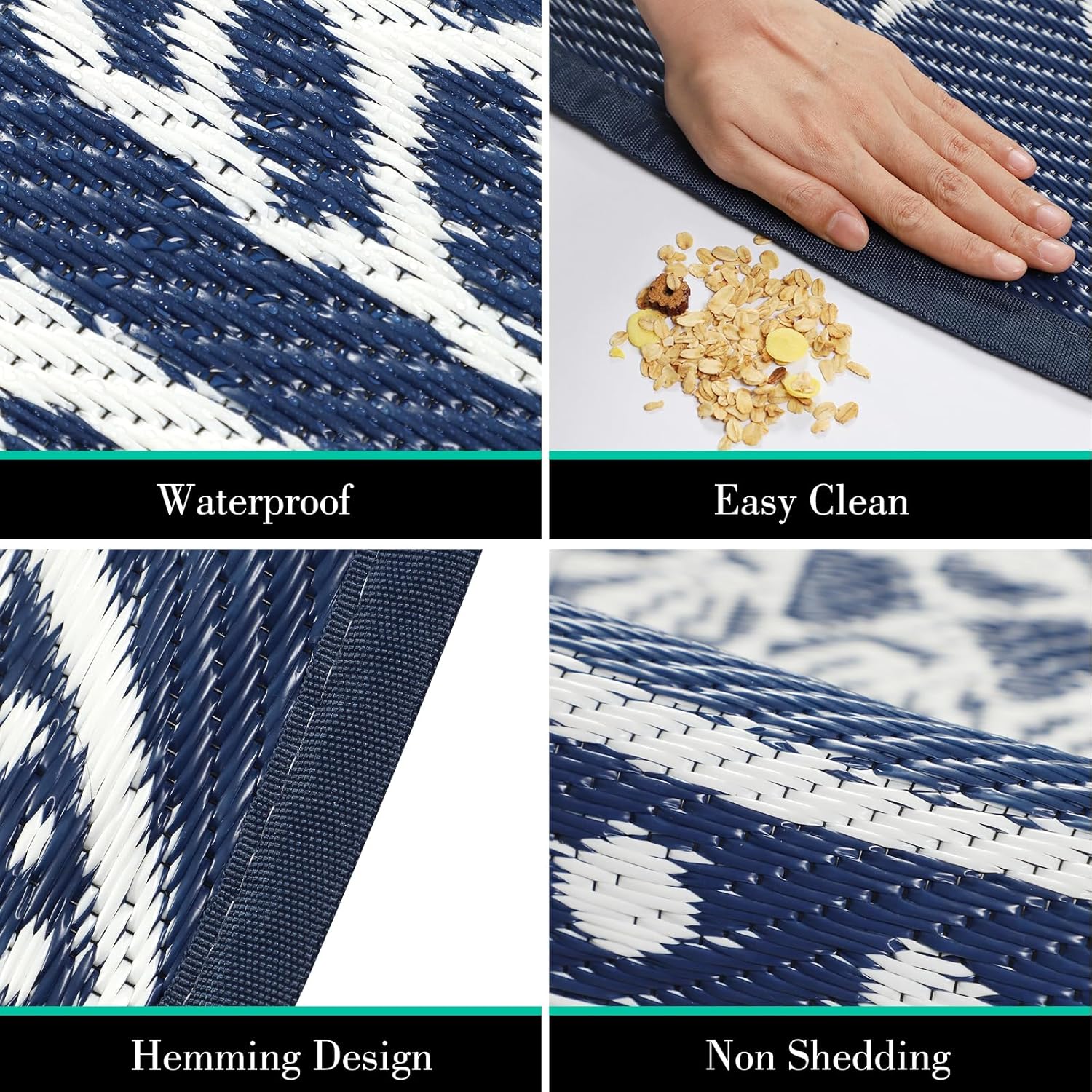 Waterproof Patio Garden Rug Easy Clean : Camping rugs are made of waterproof material that are perfect for outdoor use. And you don’t worry about the outdoor dirt,just shake and wipe with a brush. For a deeper clean, you can use a damp cloth with mild soap or rinse with water and let it dry naturally.