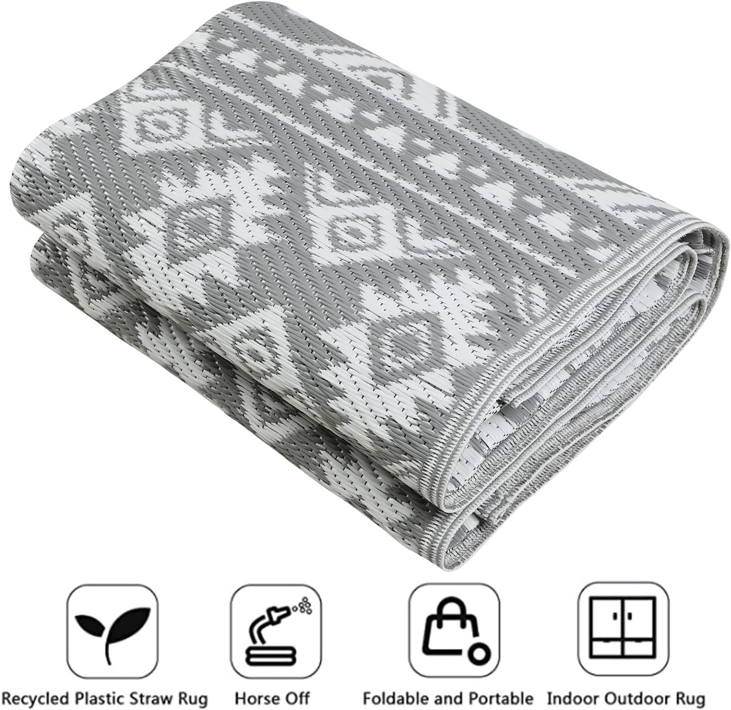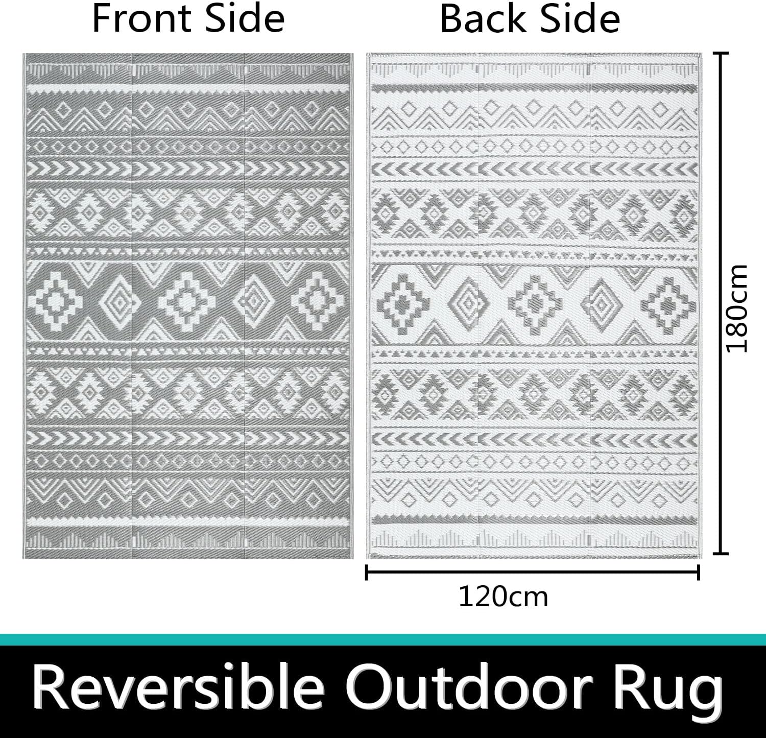 Waterproof outdoor patio rug with premiun quality recycled plastic straw making outdoor rug strong and durableLarge outdoor rug measures 120cm in width and 180cm in length offering enough clean and warm space enven in outdoor activitiesDouble-side parttern outdoor patio rug showing excellent patterns on each, just placing on ground without hesitation and enjoy your cozy timeEasy to clean outdoor area floor rug could be wipe clean or hose off requiring low maintenance no worrying about moisture spray spills or durty shoes or pet paws special designed for busy daily lifeLightweight plastic straw mat foldable and portable, large outdoor reversible rug could be folded into a small size easy to carry and storageVersatile recycled rug indoor outdoor perfect for garden patio balcony picnic decking rv camping A large outdoor rug reversible mat with high-end design adding warmness and comfort to your daily life. Recycled plastic outdoor rug: reversible outdoor rug for patio are tightly woven from straws made of premium quality recycled plastic for durability and strength.Outdoor patio rug are hard-wearing tear-resistant also softness and comfort underfoot. And not hurt grass or scratch your deck. with high end design, bring beautity and trendy Customers like the appearance and quality of the rug. They mention that it looks awesome and is of great quality. AI-generated from the text of customer reviews