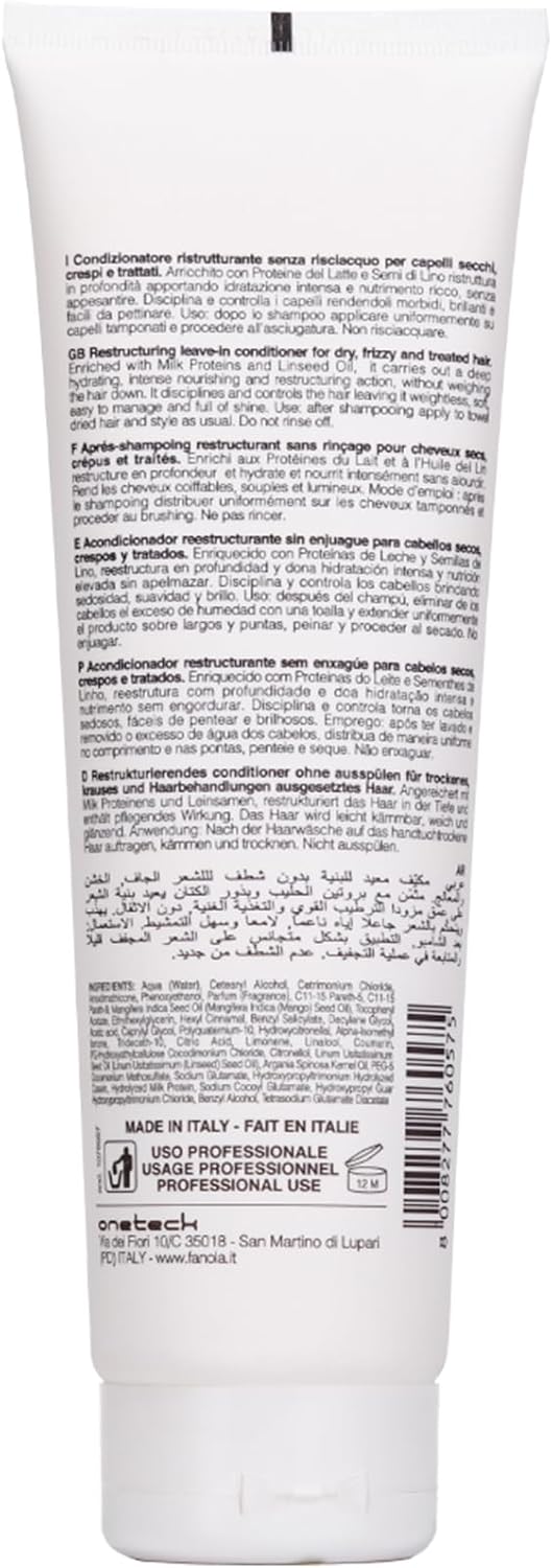 Fanola Restructuring Leave-in Conditioner, Deep Hydration and Nourishment to Dry, Stressed and Damaged Hair, Enriched Formula with Milk Proteins and Argan Oil, 300