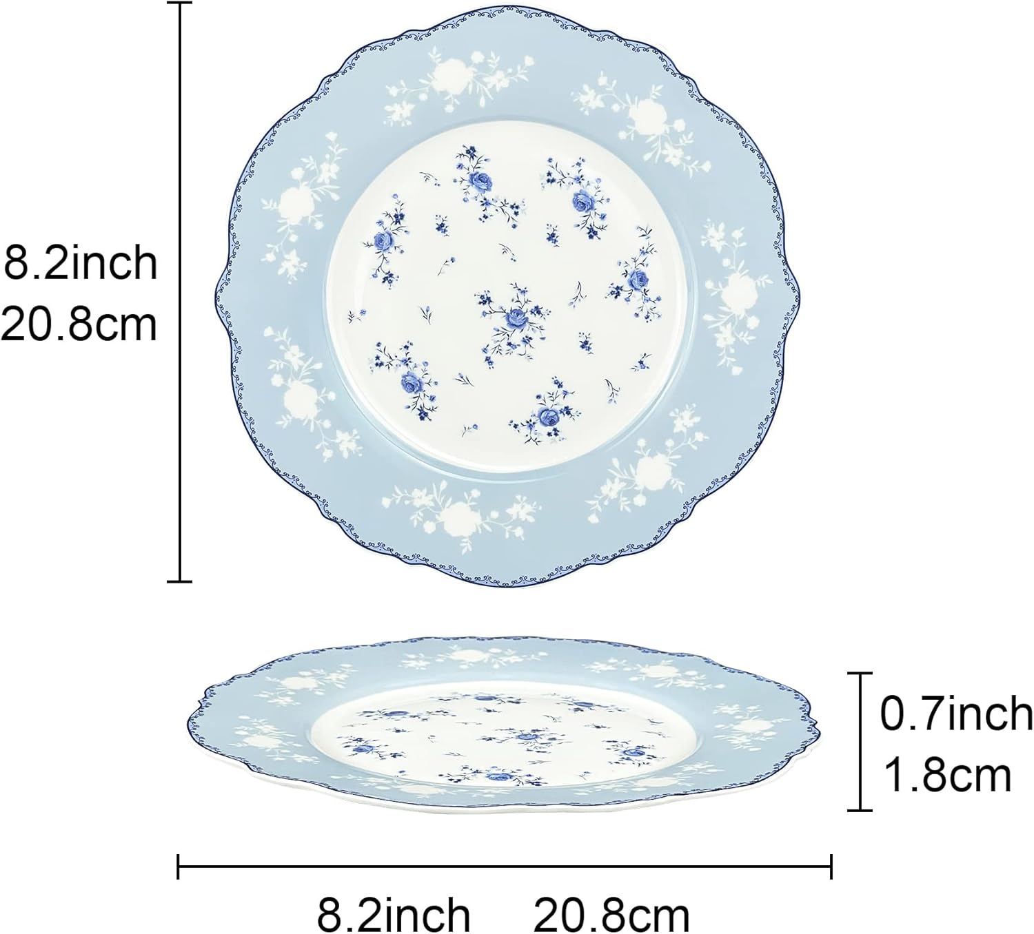 fanquare 20.8cm Porcelain Dessert Appetizer Plates, Blue and White Side Plates Set of 4, Royal Vintage Dinner Service for Kitchen, Dining Table