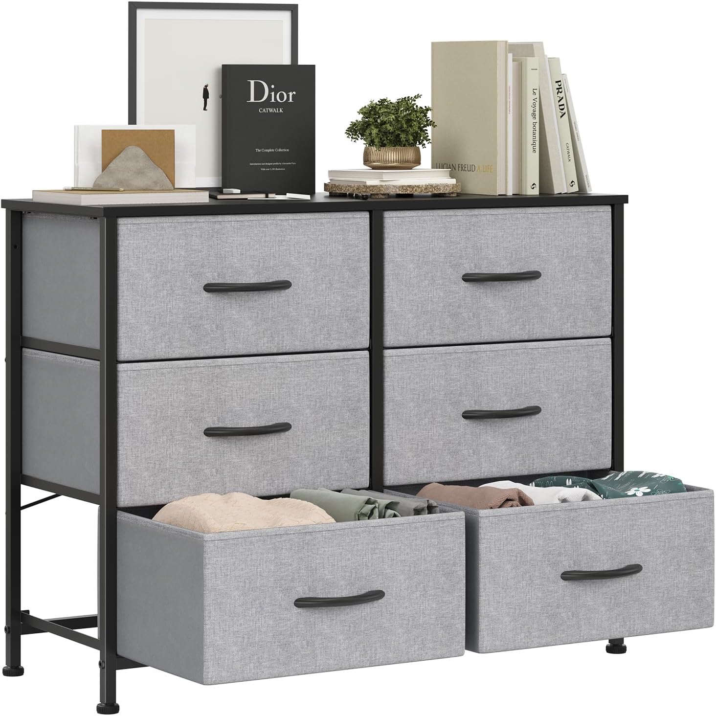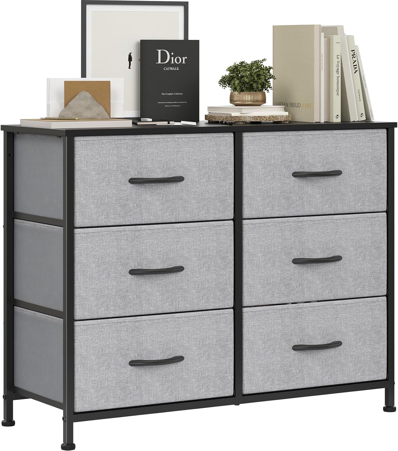 Farini 6 Drawers Dresser for Bedroom, Fabric Drawers Chest Tower with Durable Steel Frame, MDF Top and Adjustable Feet for Bedroom & Home Organization