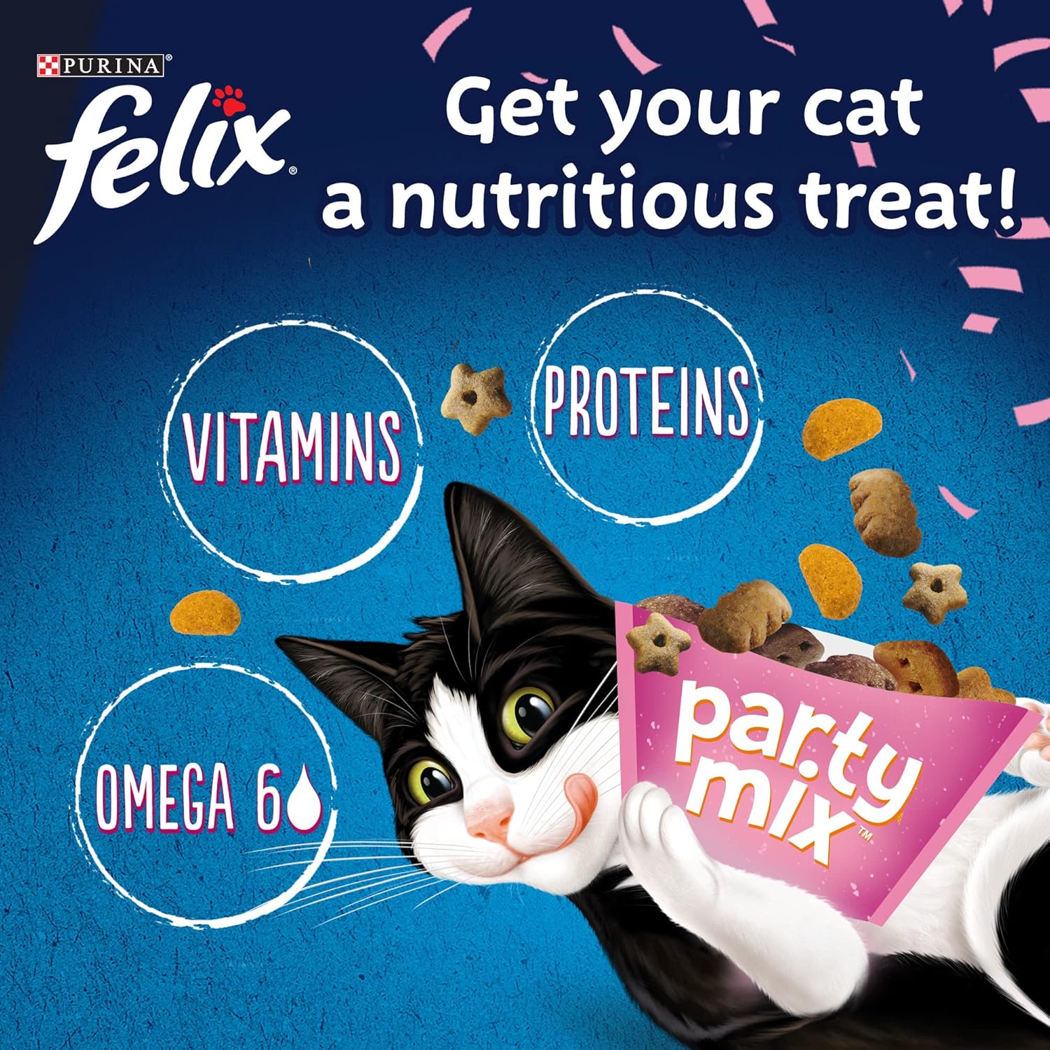 Share more enjoyable and fun moments with your cat with the new FELIX PARTY MIX! Contains an irresistible mix of colourful snacks with inviting aromas, delicious flavours and delicious textures. It’s not all! Felix Party Mix contains proteins, vitamins and Omega6 fatty acids to help your cat live a healthy and happy life. Resealable pack of 60 g.