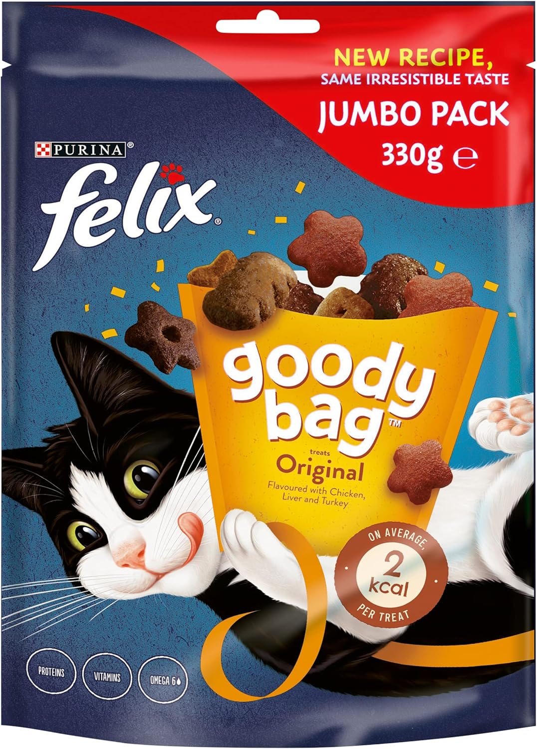 Felix Goody Bag Original Cat Treats Flavoured With Chicken, Liver And Turkey Contain Proteins, Vitamins And Omega 6 Fatty Acids To Help Your Cat Live A Healthy And Happy Life