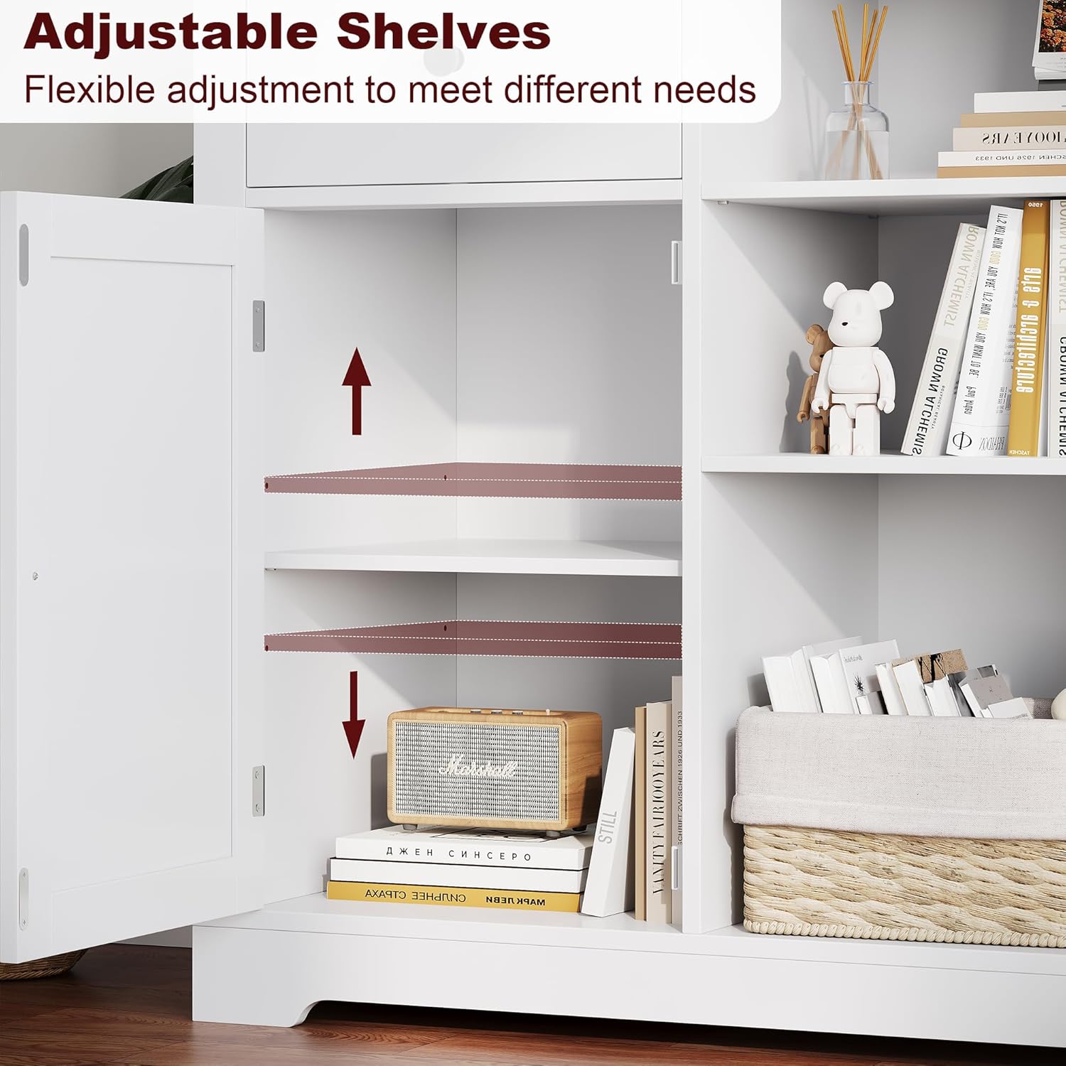 【Multi-functional Storage Cabinet】: Elegant white colour combined with unique cabinet door lines creates this stylish furniture. The white sideboard is suitable for various decors and can be used not only as kitchen sideboards, but also as dining room buffet cabinet, entryway console table, wine cabinets, sideboards for living room, and more.