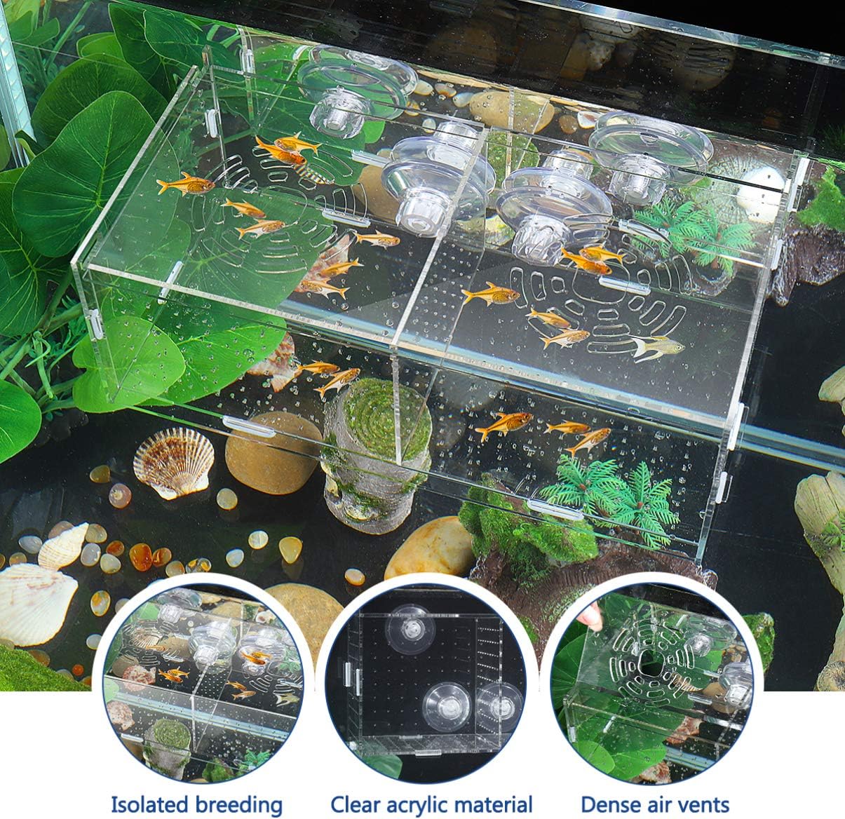 Must-have for Pregnant – Two isolated rooms for isolating and protecting small , pregnant and newborn . Fish eggs will drop to the bottom of the room, no attack from other , which improves survival rates of newborn .