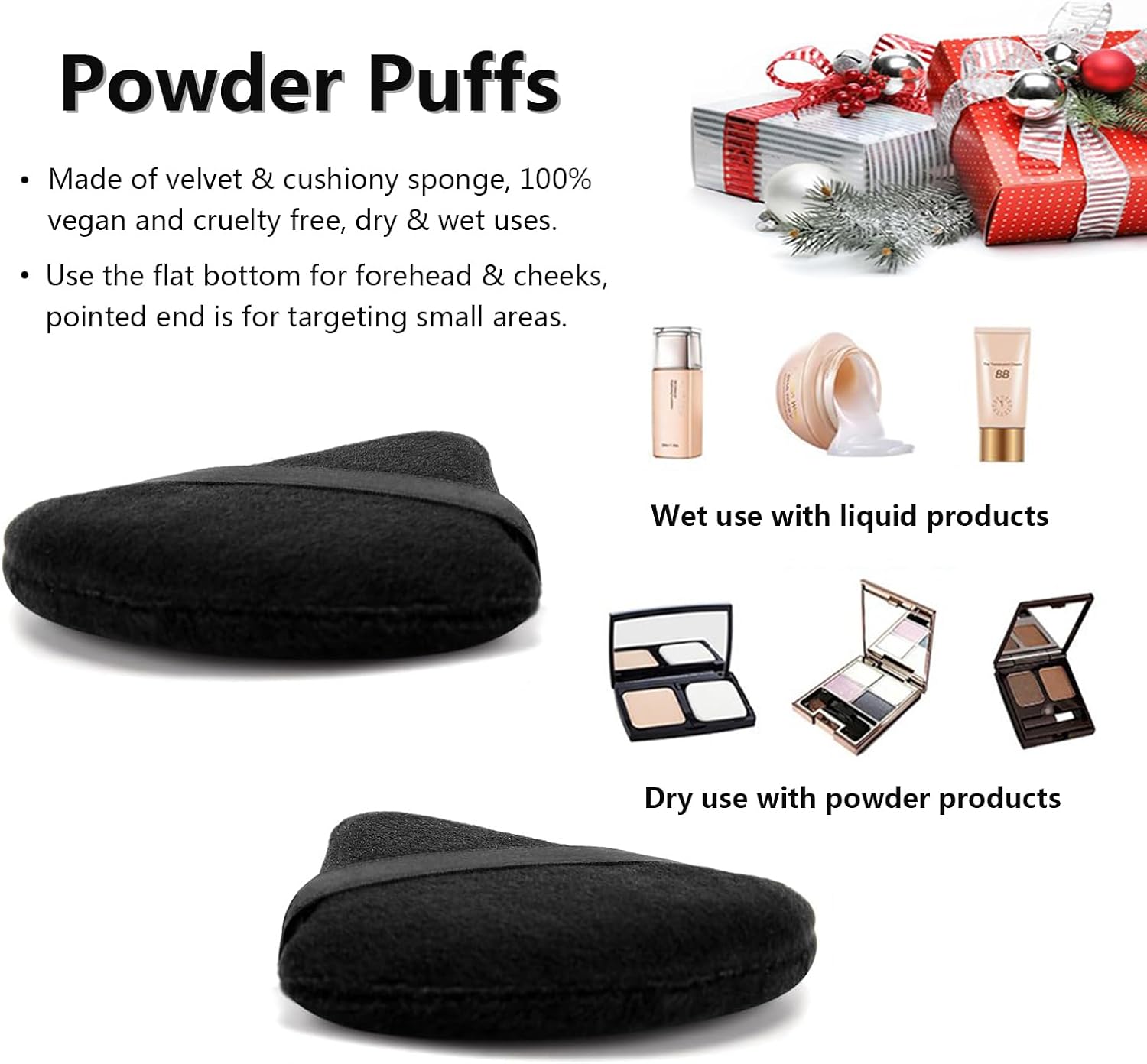 TRIANGLE POWDER PUFF — Makeup brush set with two makeup puffs, non-latex beauty sponge with triangular shape. Use the flat bottom for forehead & cheeks, pointed end is for targeting small areas.