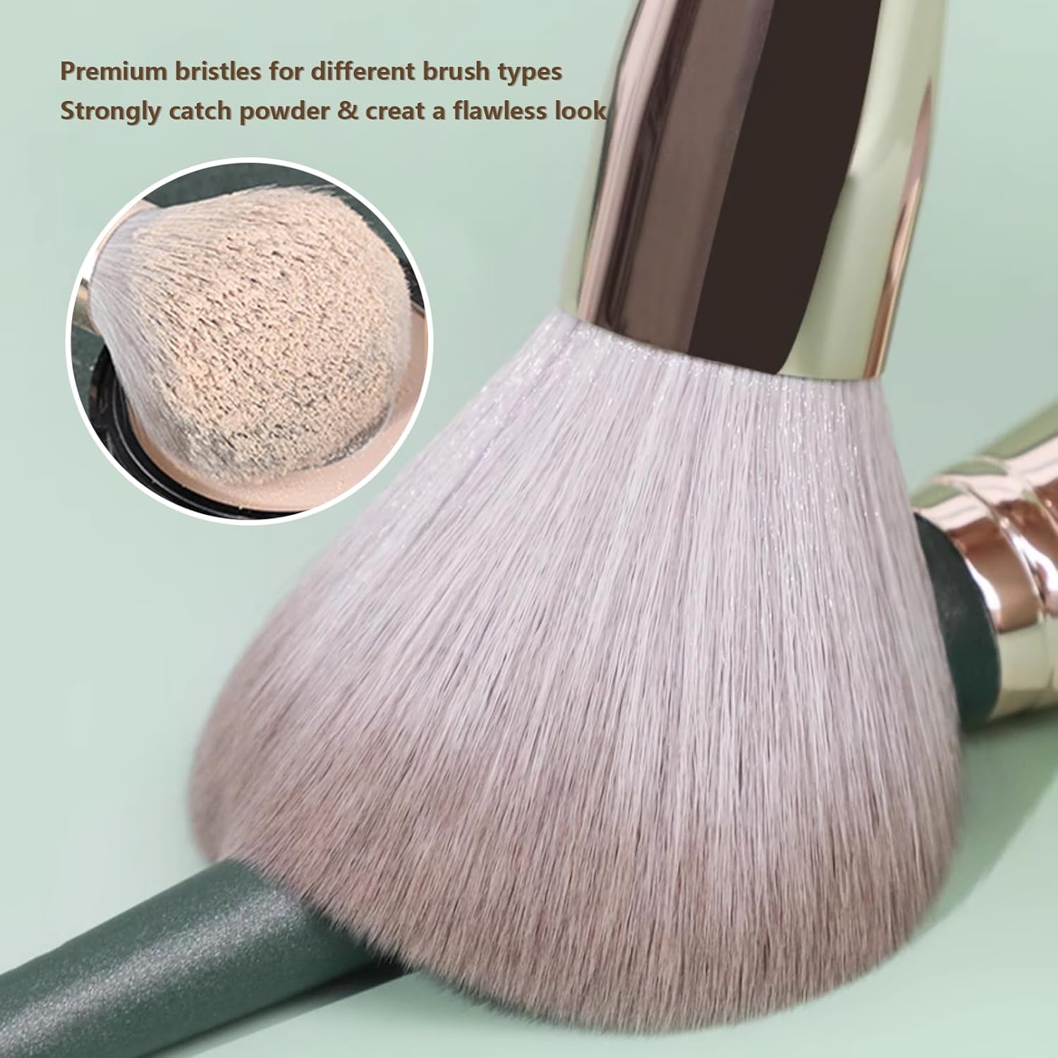 PREMIUM SYNTHETIC BRISTLES– 100% Vegan and Cruelty free synthetic fibers are easy to maintain and clean, no irritation to the skin. Soft, fluffy and dense bristles can pick greatly and not soak up too much product to create a smooth flawless looking finish.