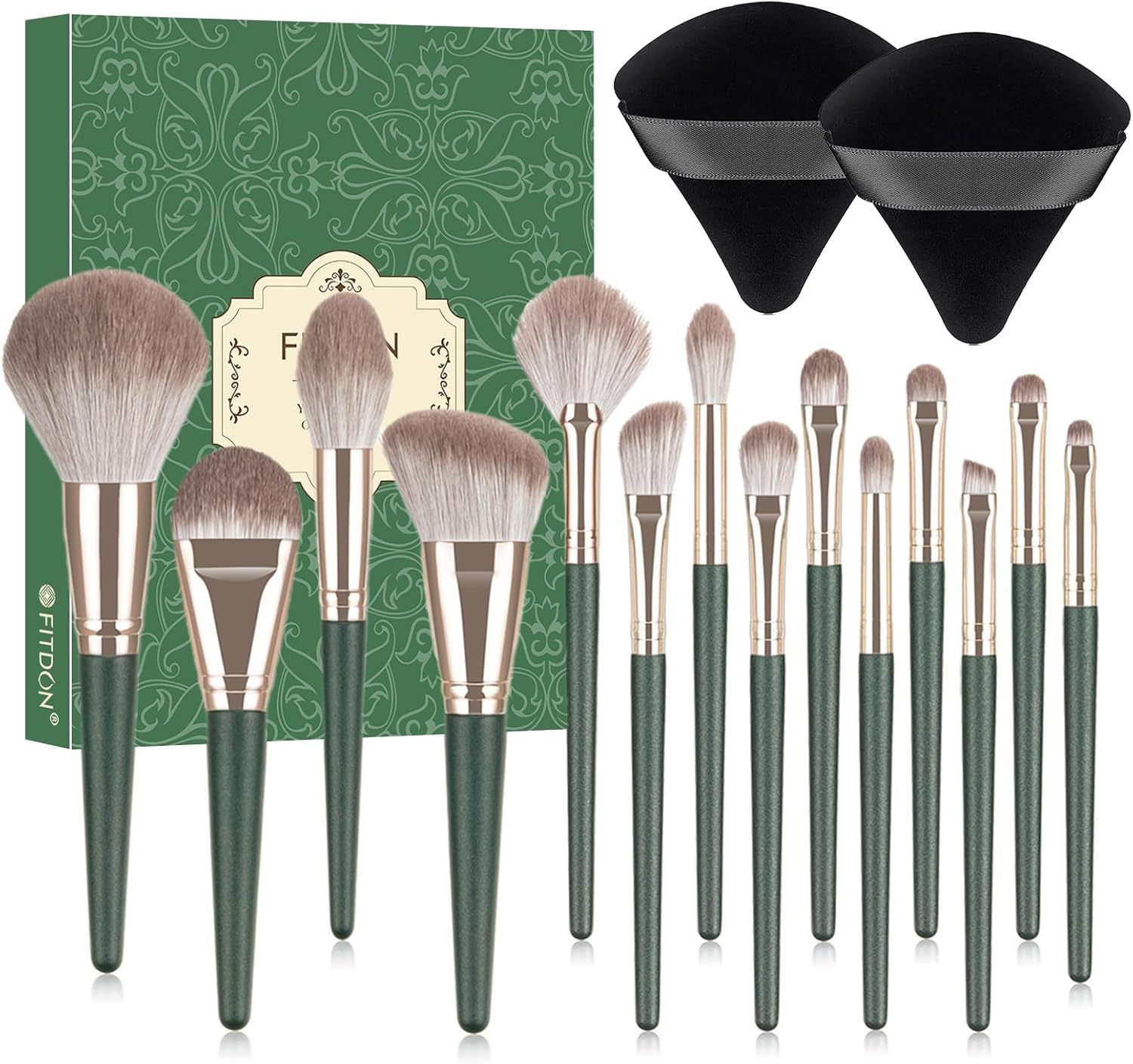 FITDON Makeup Brush, 14PCS Make Up Brushes Set Kabuki Foundation Face Powder Concealers Eyeshadow Blush Brushes with 2PCS Powder Puffs