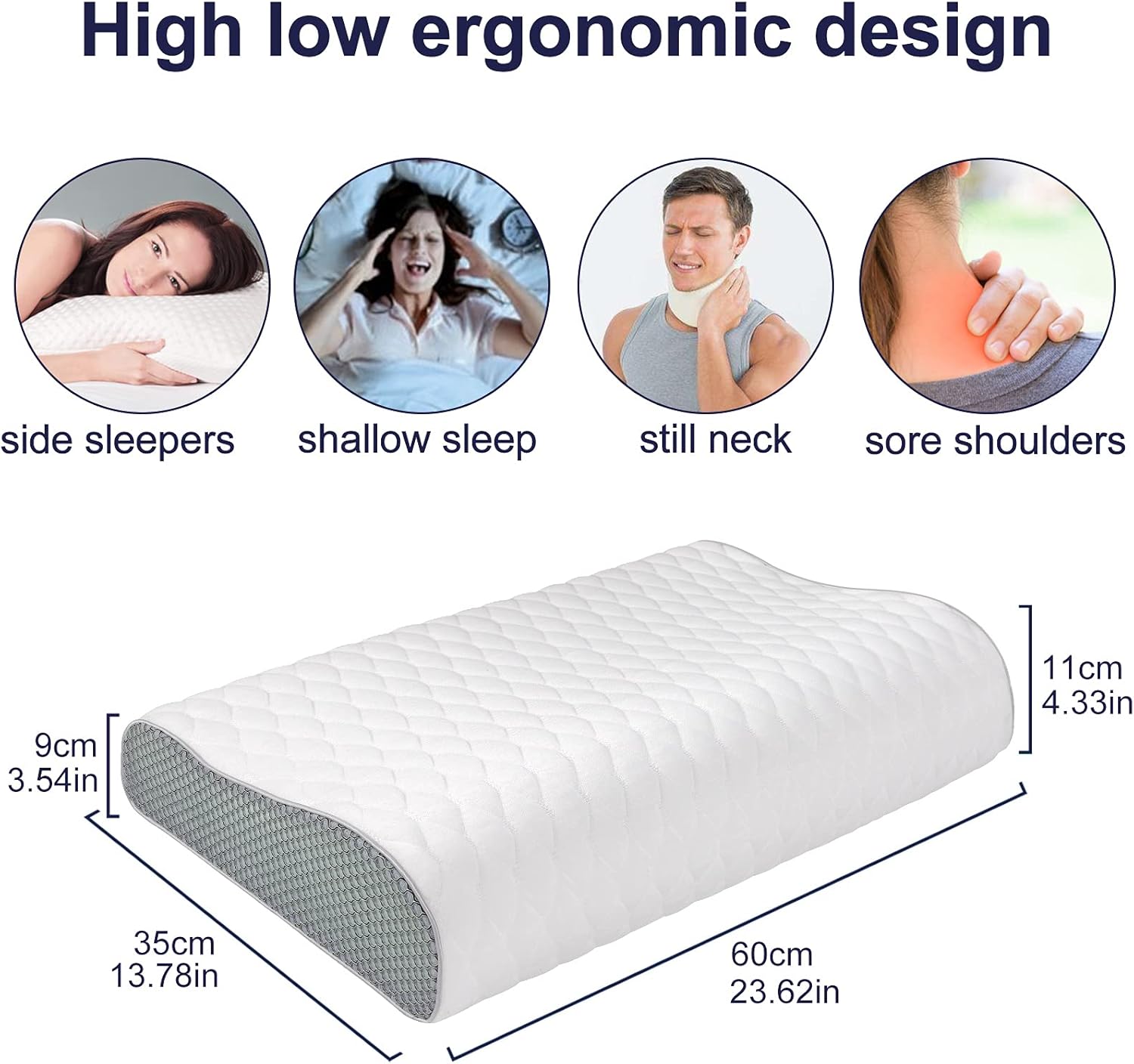 Memory Foam Pillow size: 60 x 35 x 9/11 cm. Why choose our cervical Memory Foam Pillow?