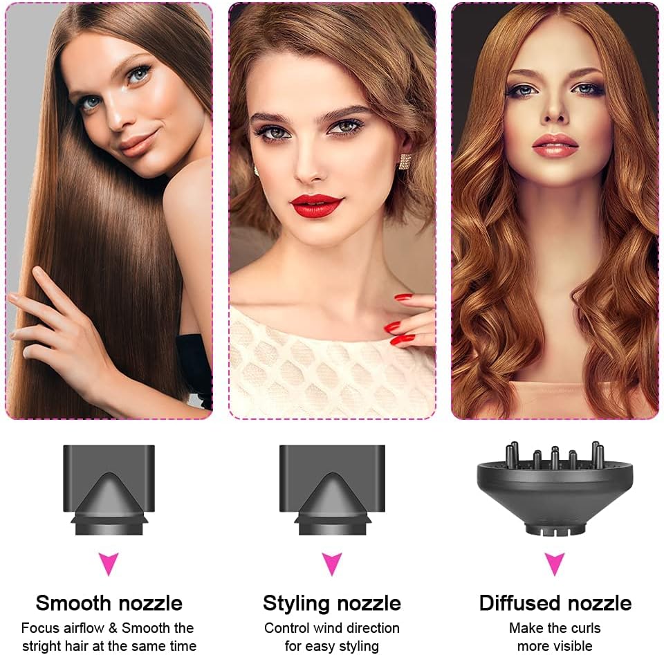 【2 Concentrator & 1 Diffuser attachments】Comes with1 smooth concentrator and 1 brush concentrator & 1diffuser for different hair styles requirements . The 2 Concentrator is perfect for straight and natural hair stying customization . The Diffuser is perfect for curling hair fluffy hairstyle caring.