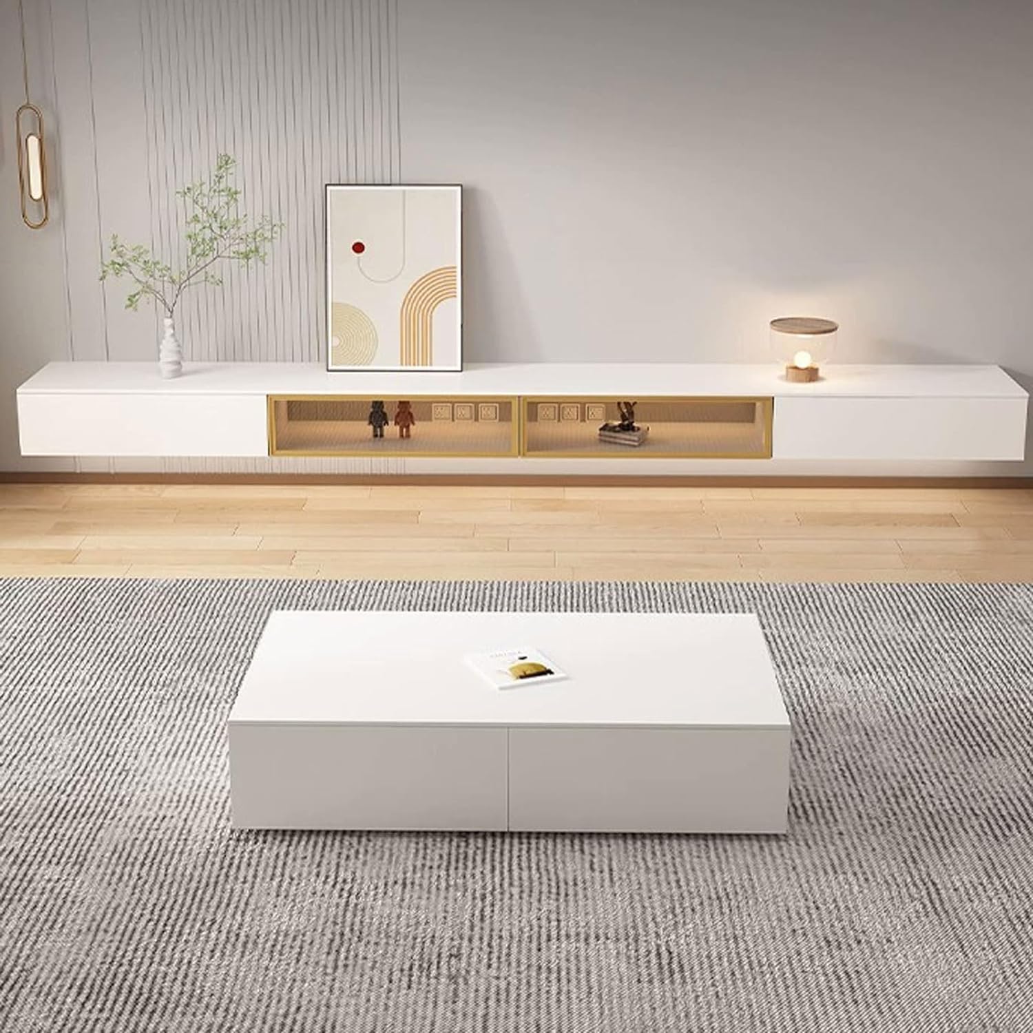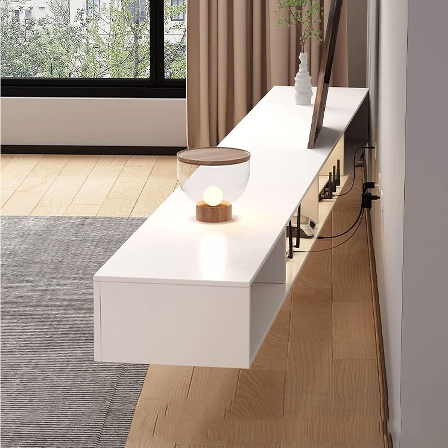 This floating TV unit not only saves each valuable inch of the floor, and it can also keep your audio or video components and essentials in an organized way. Perfect for your living room,bedroom, entertainment center and so on.