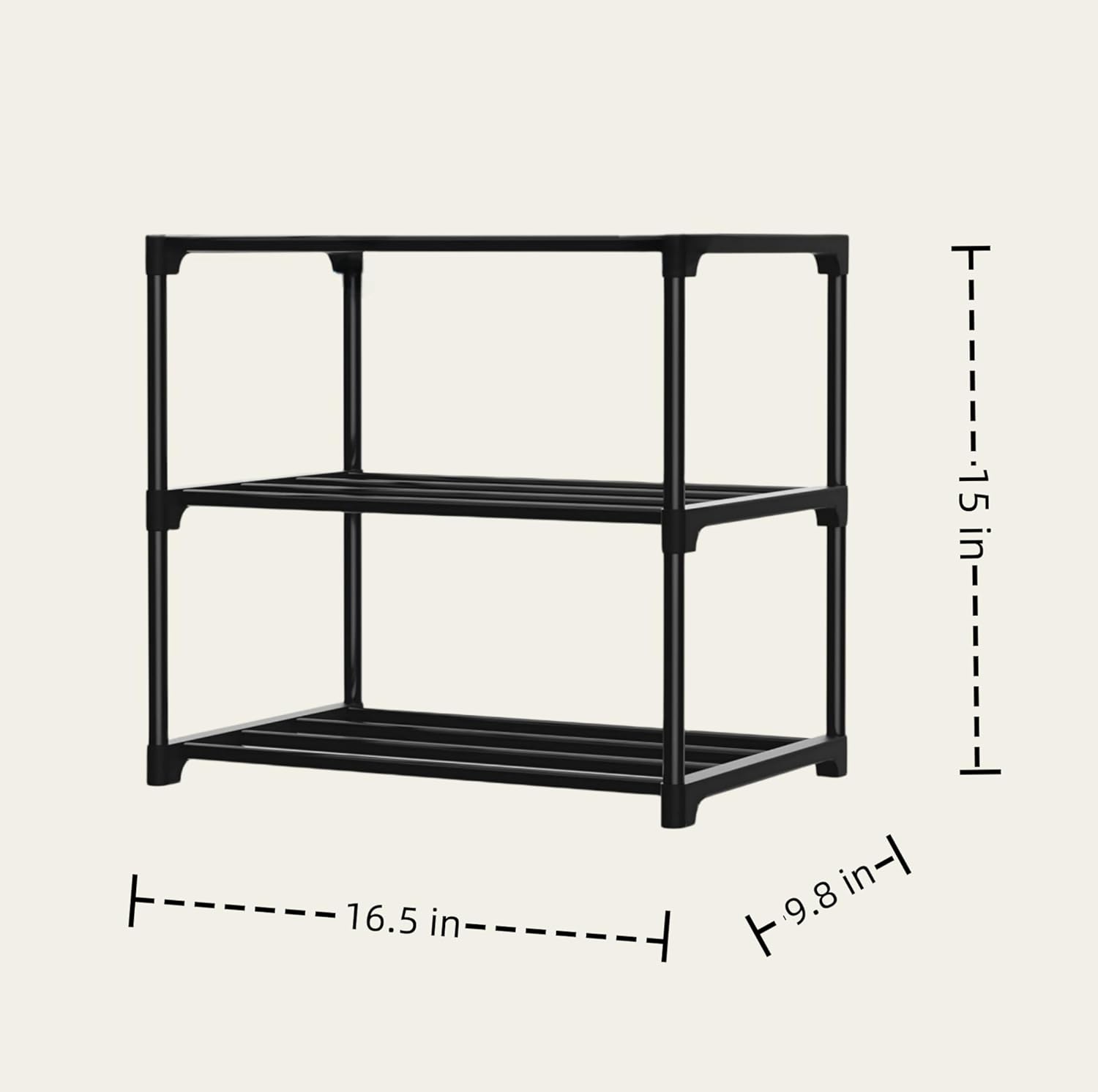 3 Tier Shoe Rack ,Space Saving Shoe Storage Organiser,Metal Storage Rack, Easy Assembly & Strong Design, Stackable Shoe Shelf, for Hallway, Living Room, Bedroom,Black