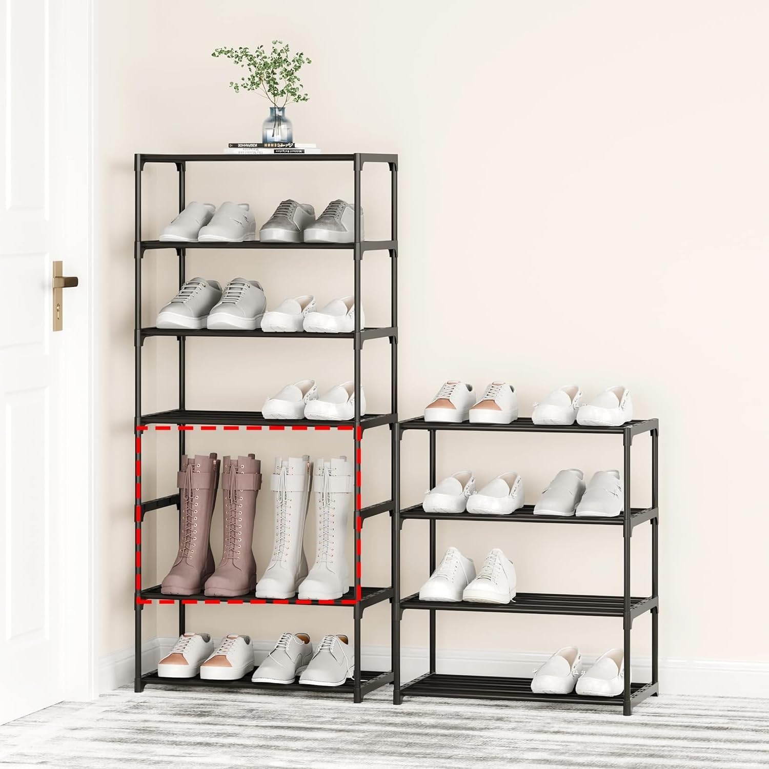【Durable Metal Construction】 Crafted with rust-proof coated steel tubes. The sturdy materials prevent deformation over time and resist damage from regular use. The strong metal frame keeps the shoe rack organizer stable even in a full load of shoes.