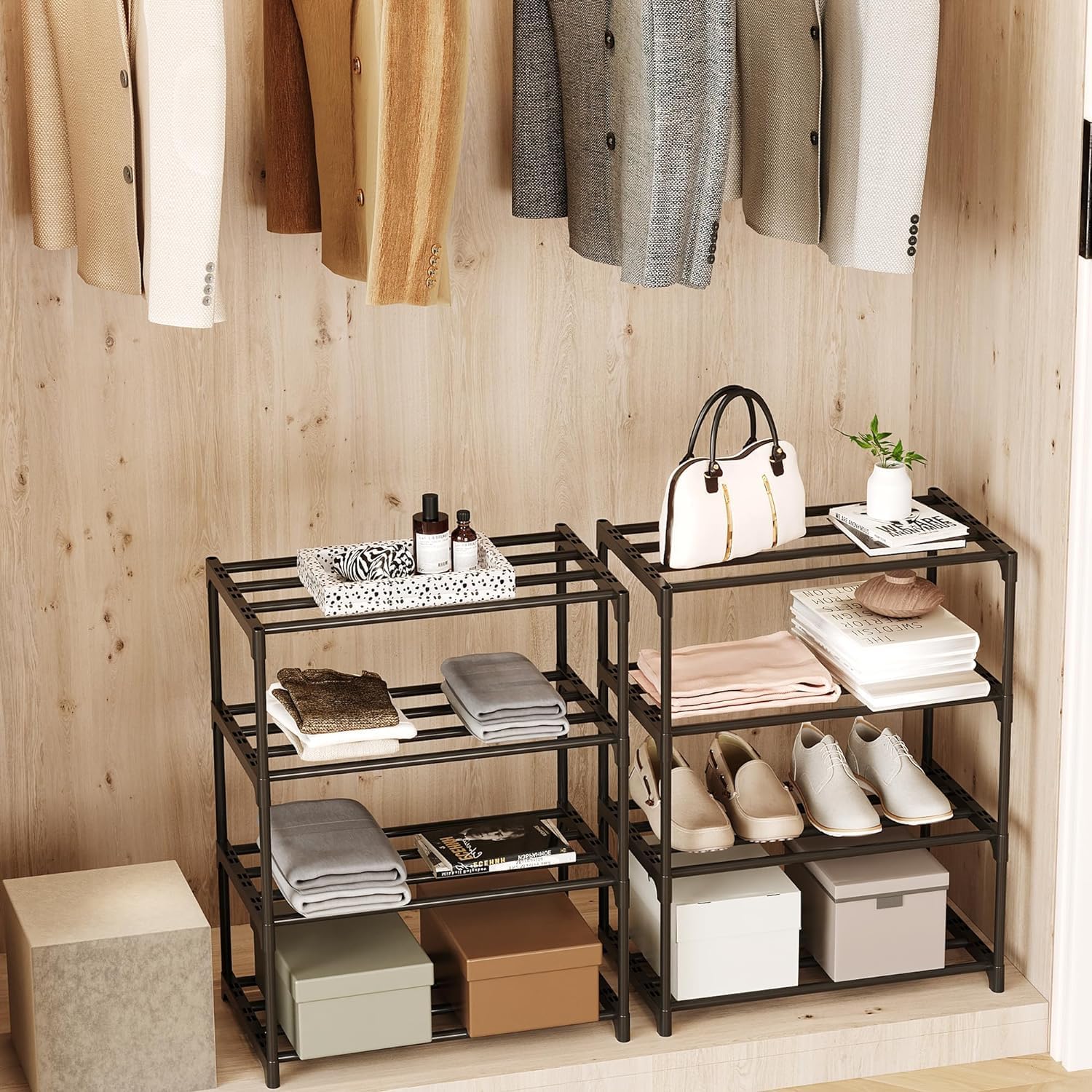 Flosvotals 3 Tier Shoe Rack,Space Saving Shoe Storage Organiser,Metal Storage Rack, Easy Assembly & Strong Design, Stackable Shoe Shelf, for Hallway, Living Room, Bedroom,Black