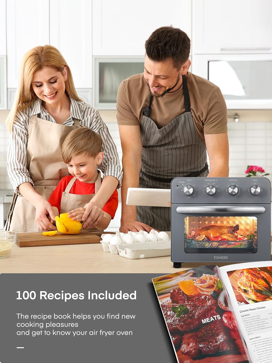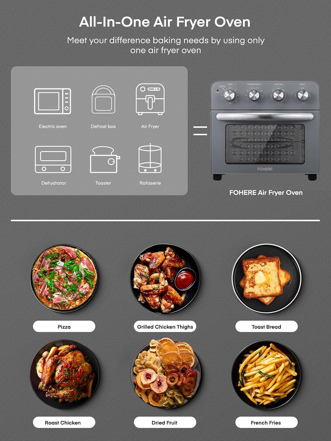 🍕 【Multifunctional Air Fryer Oven】FOHERE Air Fryer Oven can completely replace air fryers and regular countertop ovens. It dehydrates, grills, air fries, bakes, broils, toasts and reheats. All your favorite foods can be cooked with one machine.