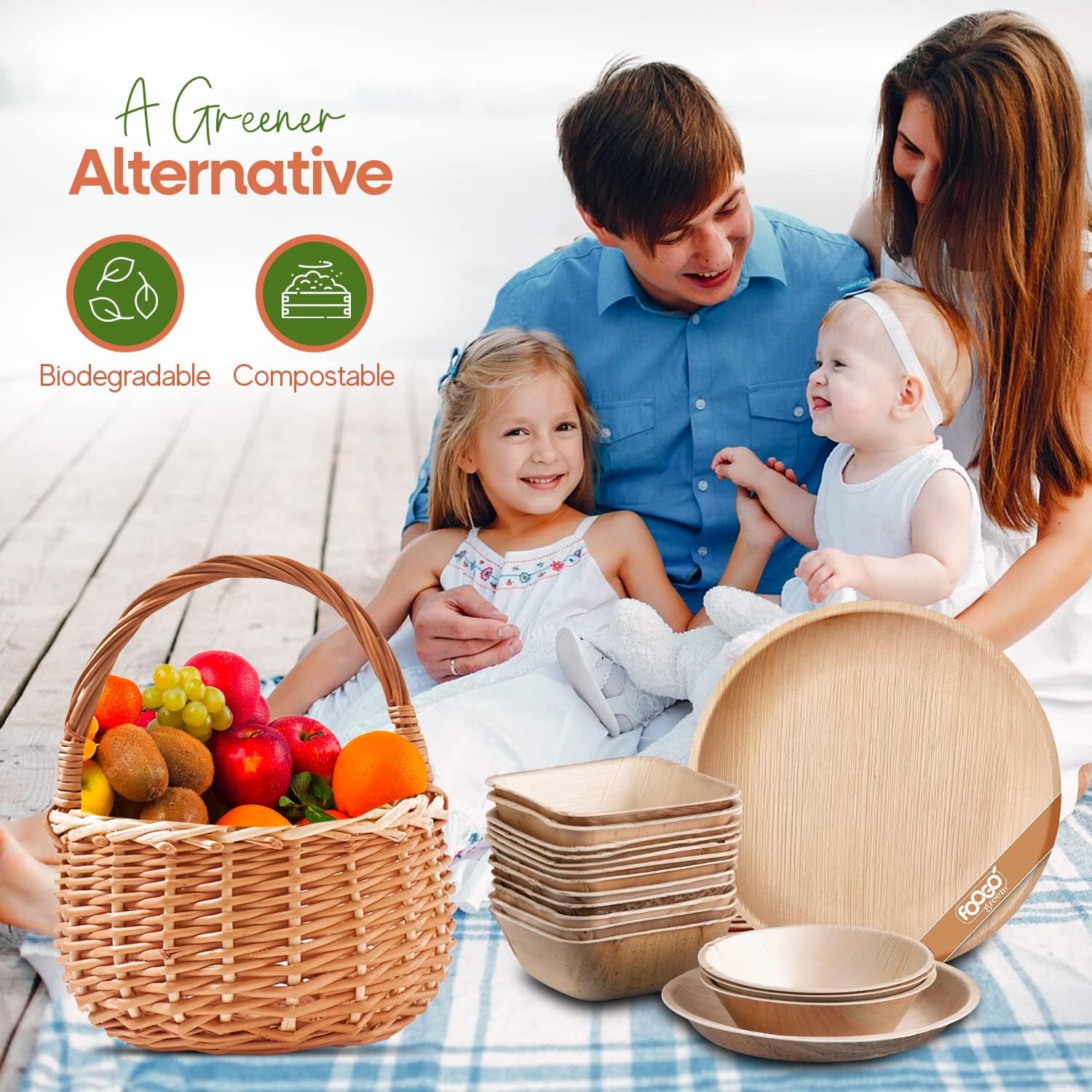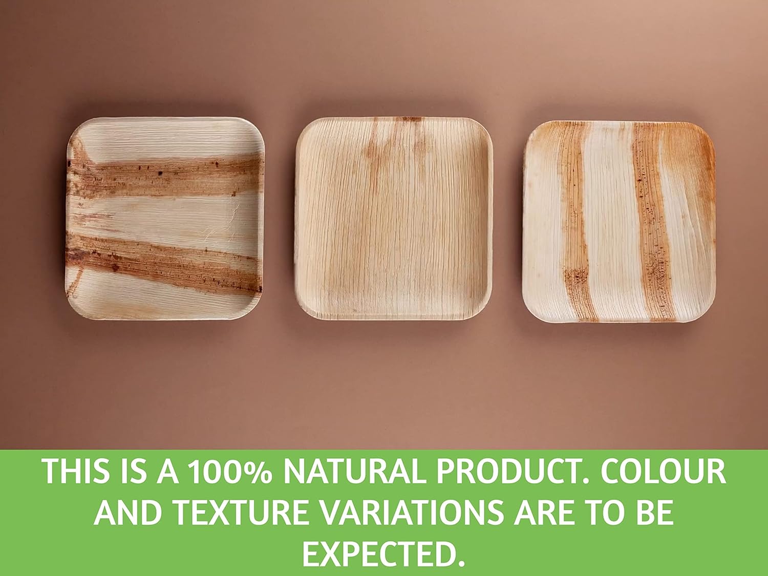 A GREENER alternative – Our eco plates are biodegradable and can be used instead of paper plates or plastic plates that are harmful to the environment. They are also a great alternative to bamboo disposable plates and wooden disposable plates.