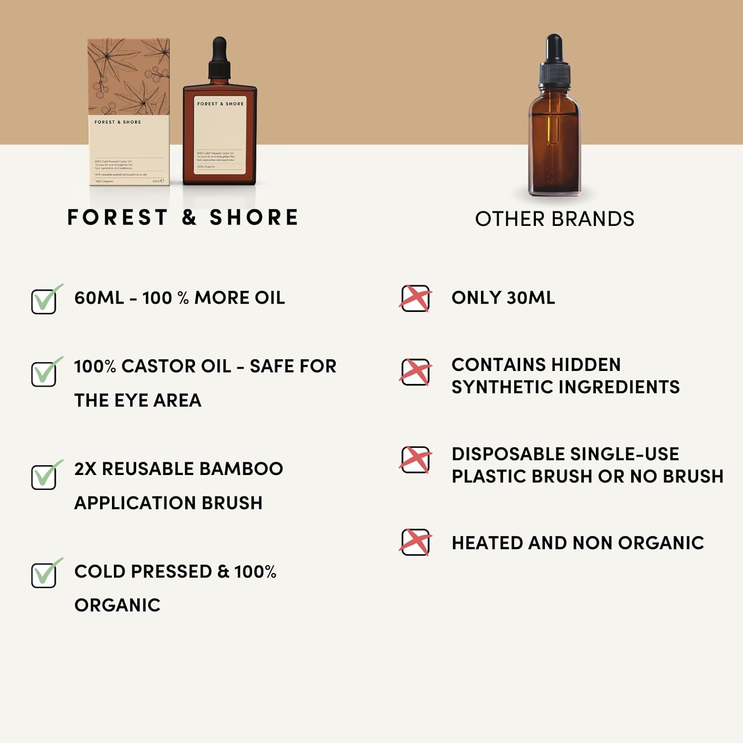 Forest & Shore Castor Oil 100% Natural & Organic for Hair Growth, Eyebrows, Eyelashes and Skin Hair Tonic Oil