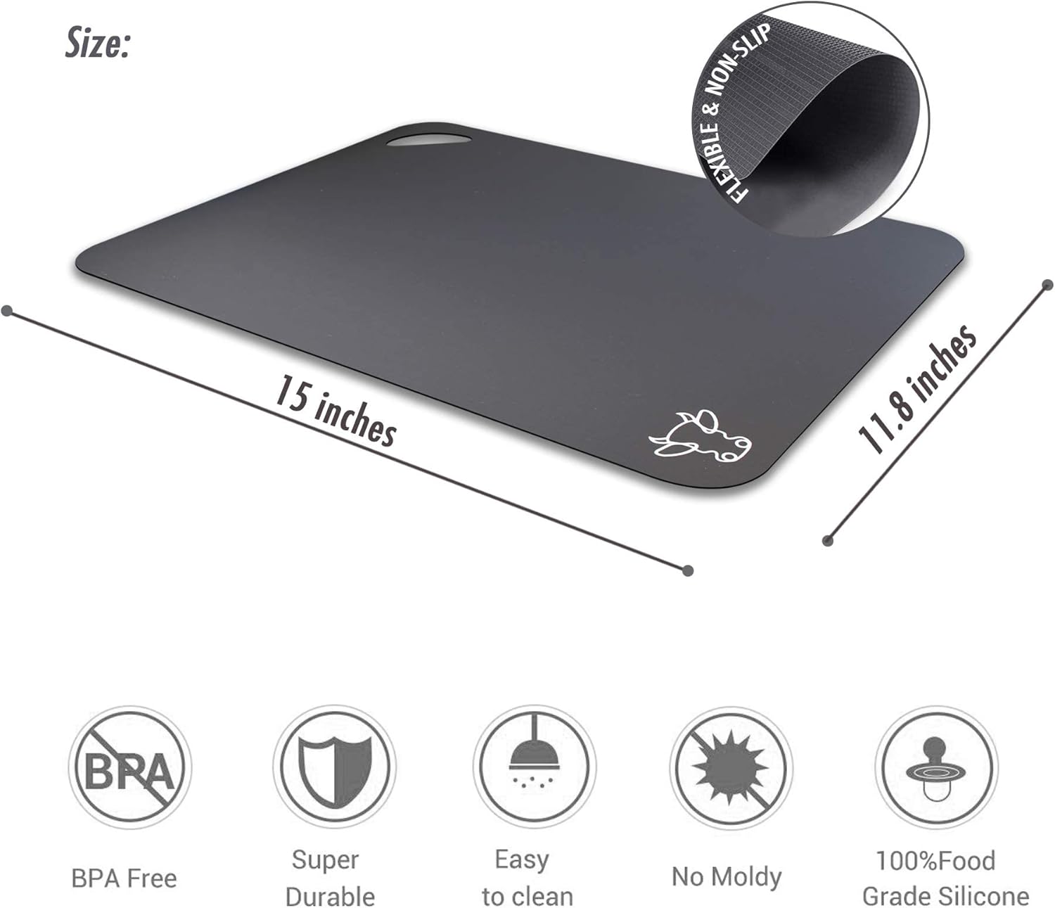 TEXTURE WAFFLE GRIPPED BACK WITH NON-SLIP SILICONE: The flexible kitchen mats have grid-textured bottom that could be put on most surface. For wet or very slippery surfaces, just place a dampened paper towel underneath for unearthly amazing stability. It solved the potential risk of unstable cooking board.