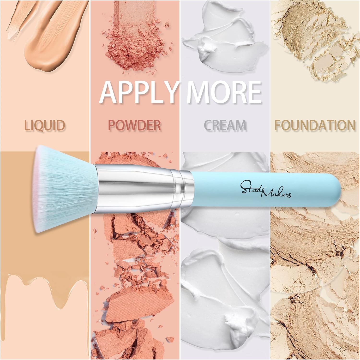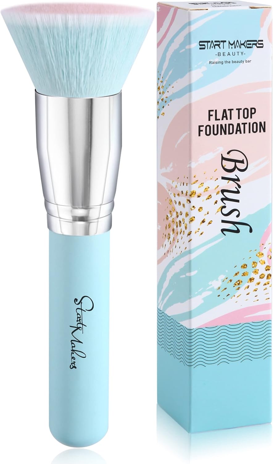 Foundation Brush Glamour Gaze Flat Top Kabuki Powder Brush Premium Synthetic Full Coverage Makeup Brush for foundation liquid Cream Buffer Blending Concealer (Blue)