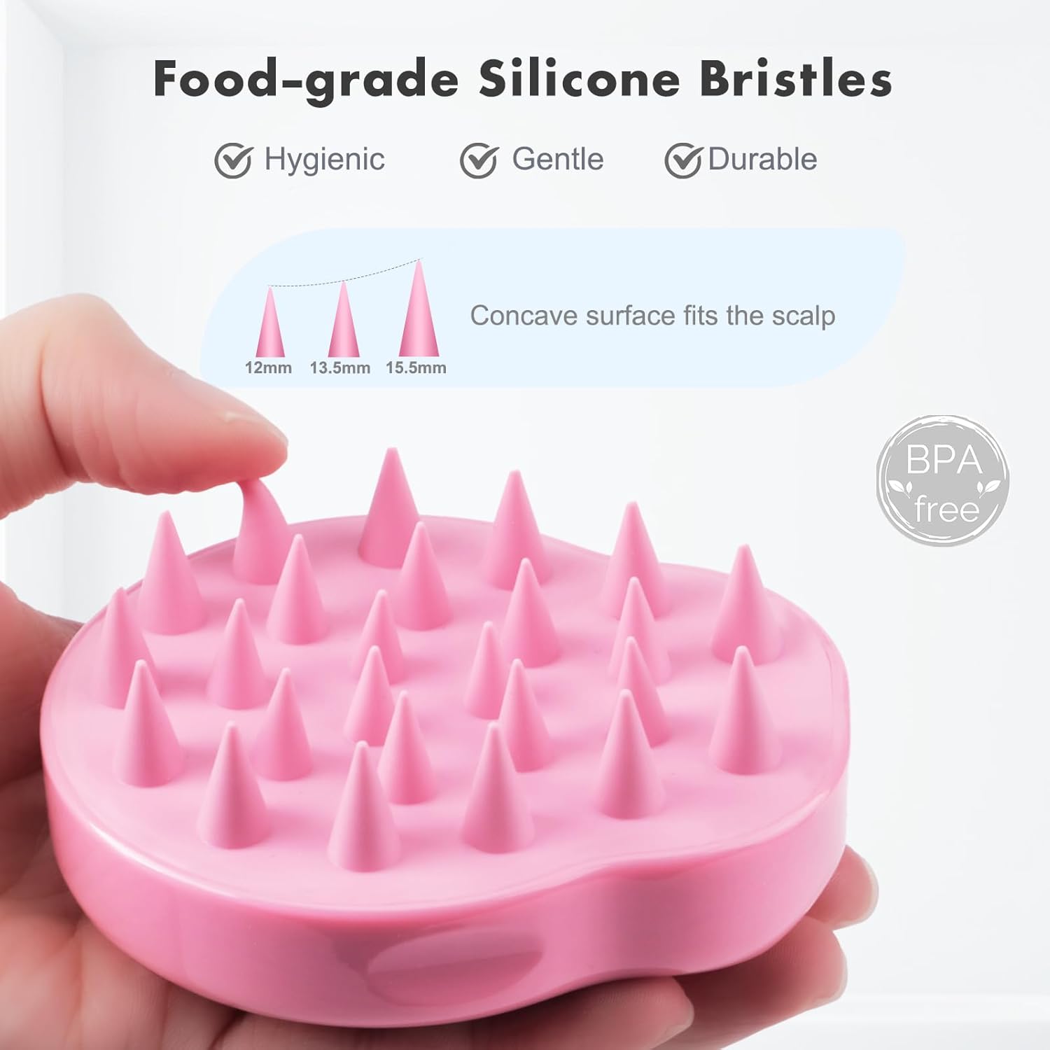 【Ergonomic Design】 The mouse-like handle fits your palm perfectly, non-slip grooves ensure a stable grip even in the shower. The concave brush surface formed by 25 tips fits the scalp for maximum working area.