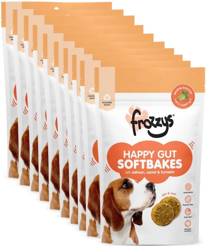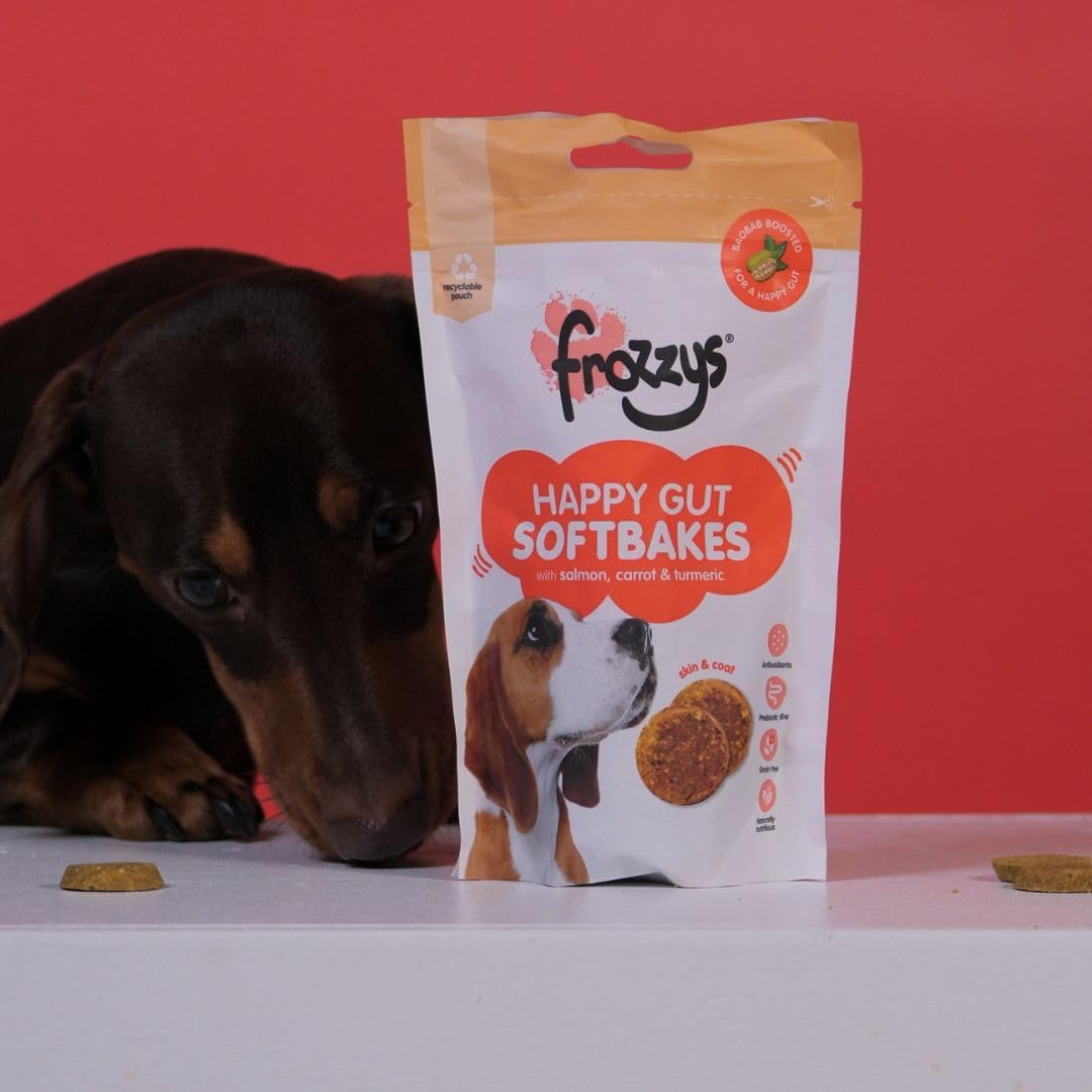 Frozzys Happy Gut Softbakes – Natural, Soft & Chewy Dog Treats (Grain Free) – Skin & Coat – 10 x 80g (Salmon, Carrot & Turmeric)