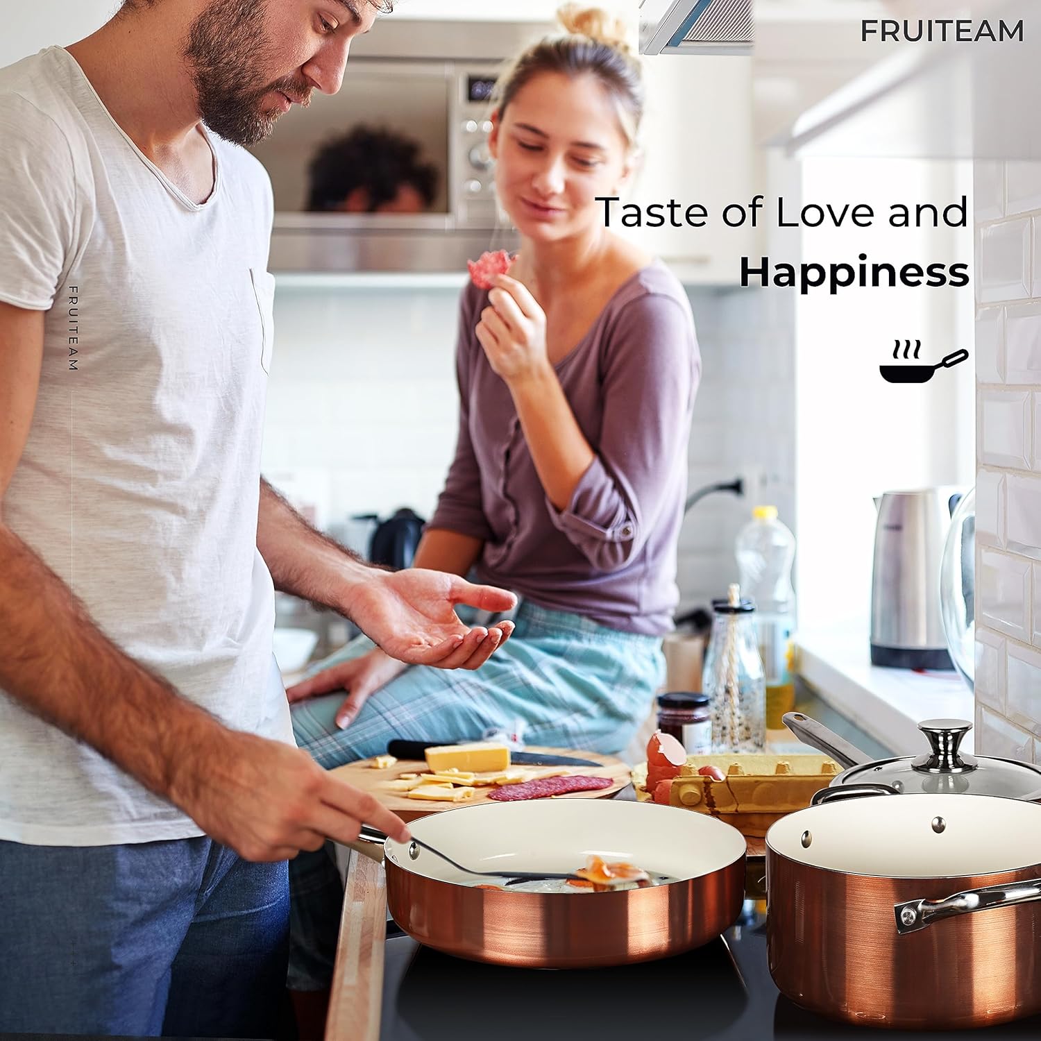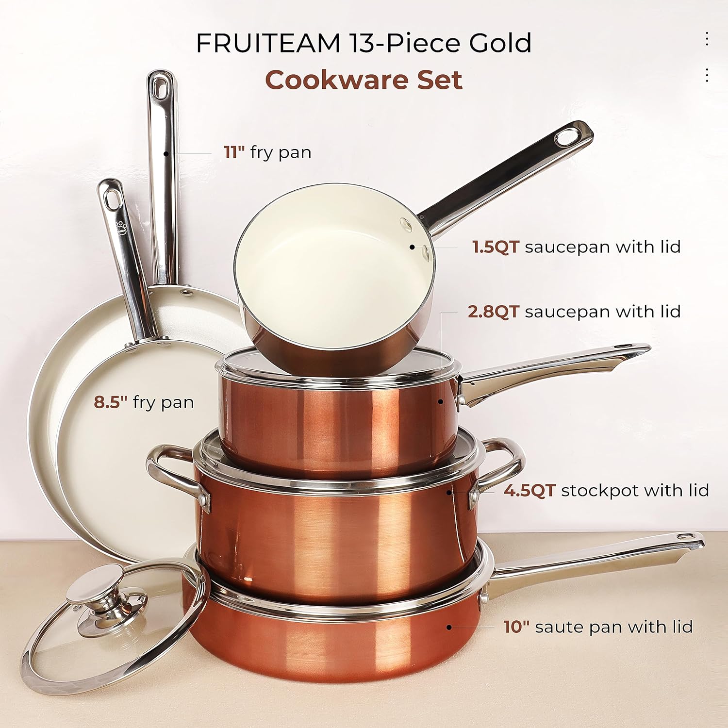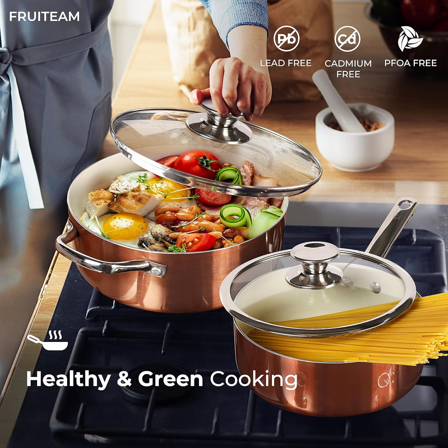 FRUITEAM Nonstick Pots and Pans Set, Cookware Set Non-Stick Ceramic
