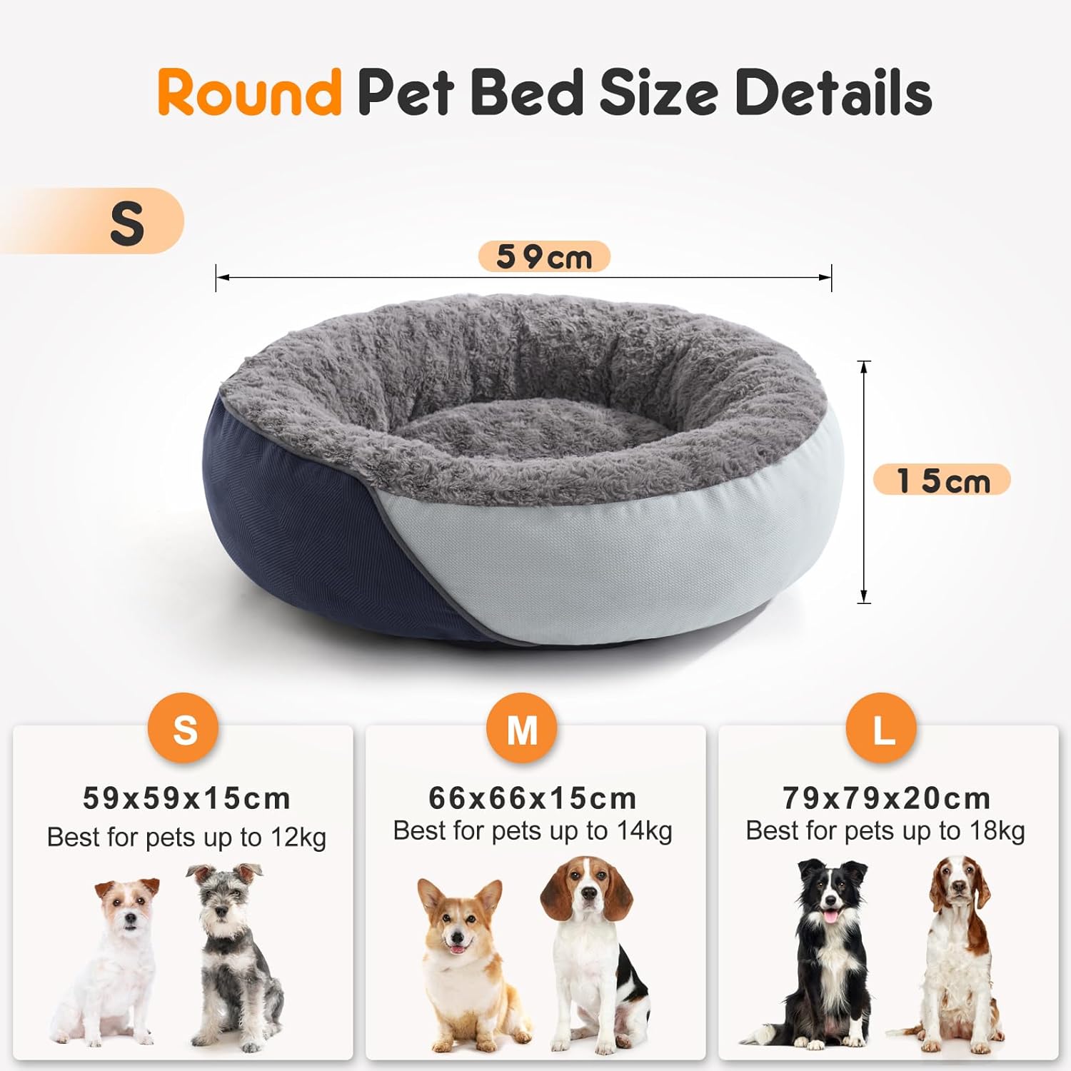 FURTIME Round Dog Bed(59 * 59cm), Donut Cuddler Dog Bed for Small Dogs, Cats, Ideal for Yorkshire, Chihuahua, Bomei