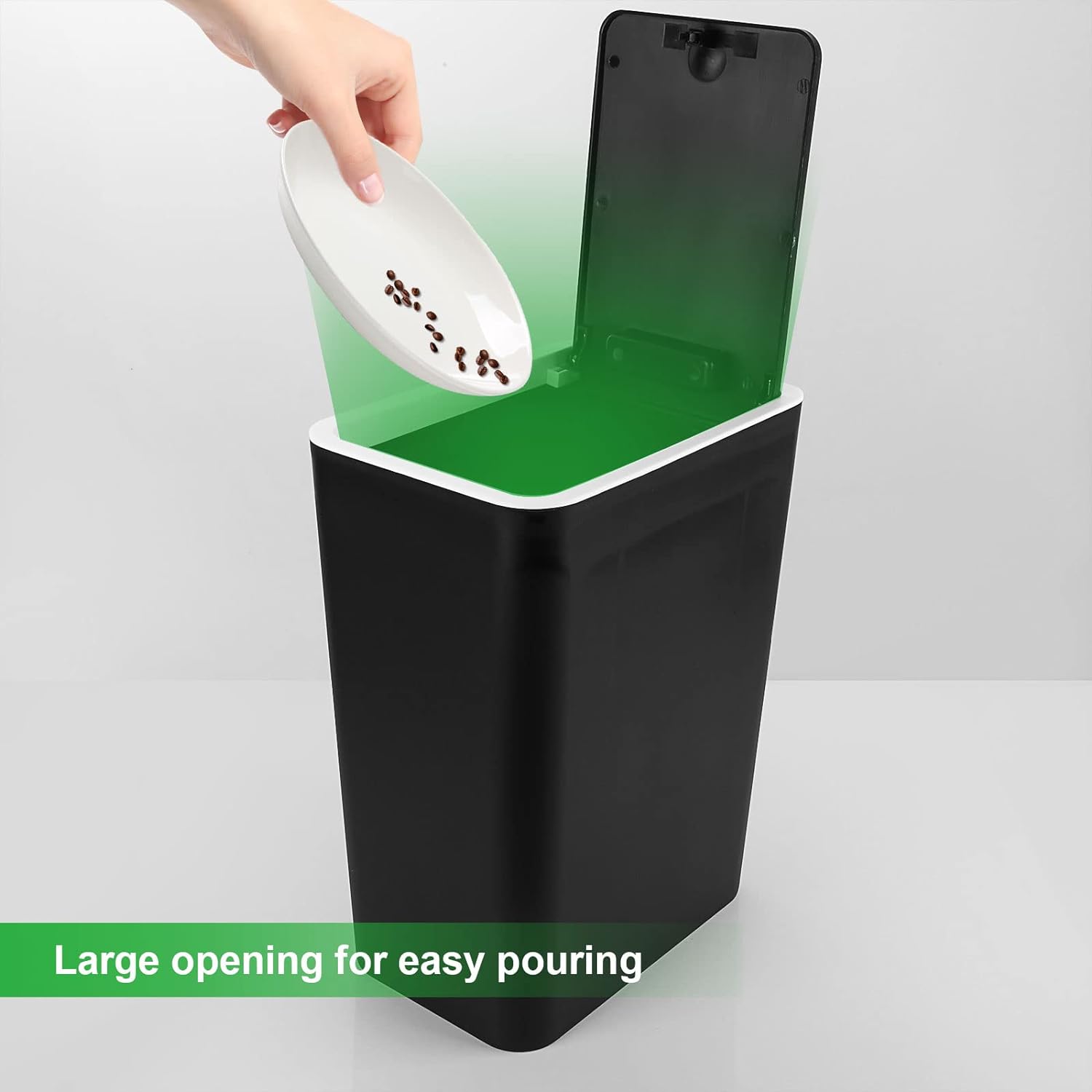 SPACE SAVING: The 17.5cm opening width allows you to fit the dustbin in any crevice and make the most of space. Ideal for use in bathrooms, offices, living rooms, bedrooms, bathrooms, kitchens and other space saving areas.
