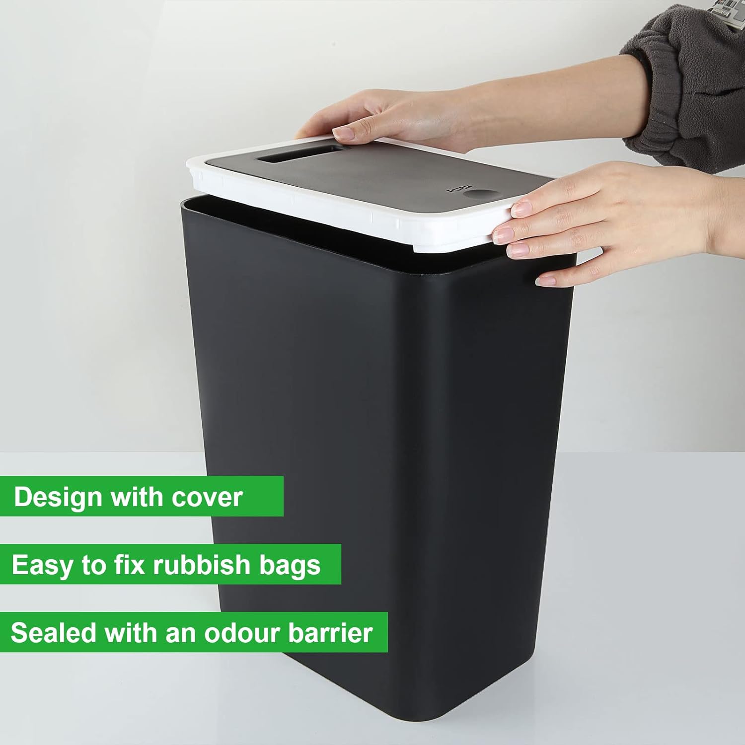 Be the first to review “FWEEK 12L Touch Top Bin Kitchen Waste Bins Plastic Rubbish Trash Can Bathroom Dustbin for Kitchen Bathroom Bedroom Living Room Office – Black”