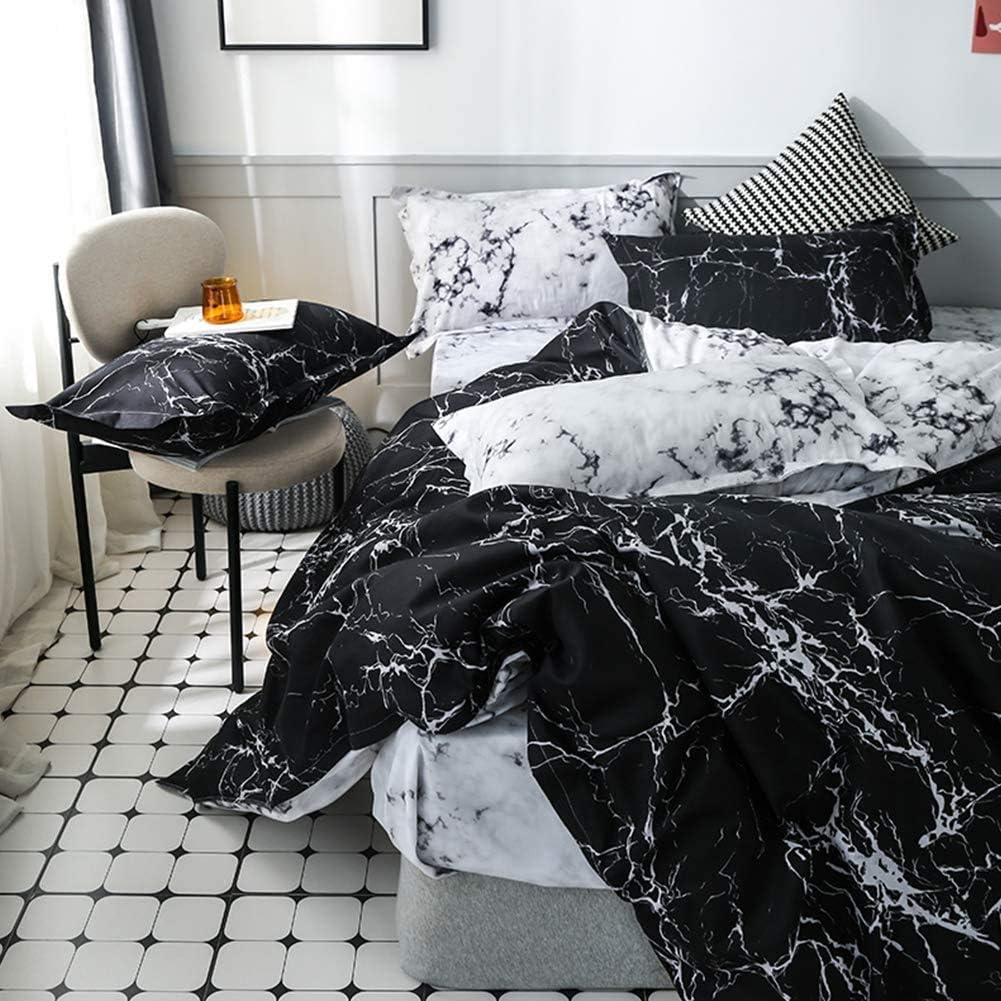 MARBLE-INSPIRED HOME DECORATION- The white marbling printed black duvet cover will infuse comfortable, stylishly, plus artistic into your bedroom. It reveals an elegant living aesthetic, creating a cozy and quiet home environment. Also, you can switch the reversible bedding cover and refresh your room decoration. Suitable for many kinds of decor styles.