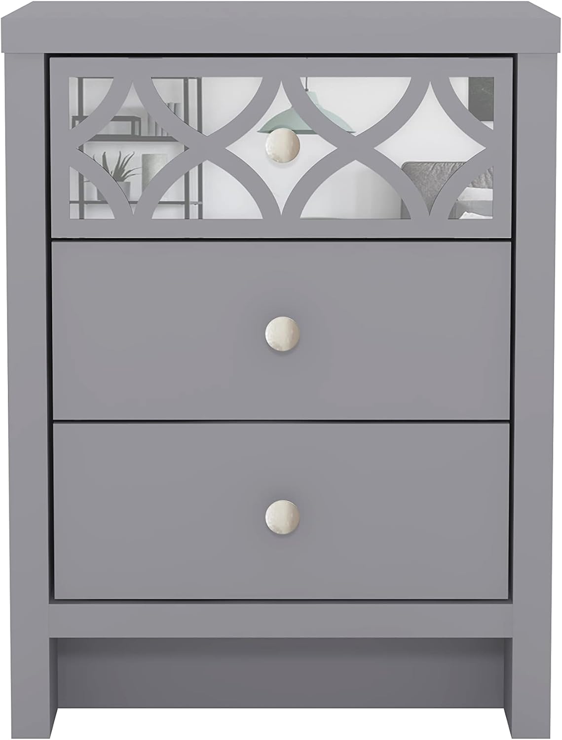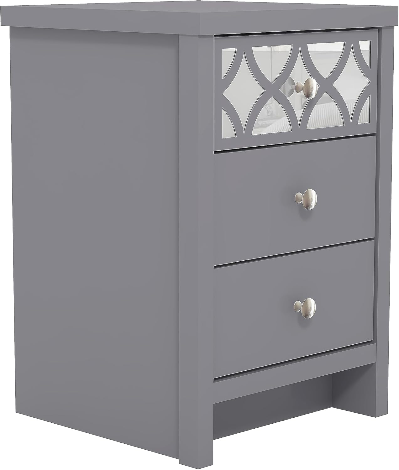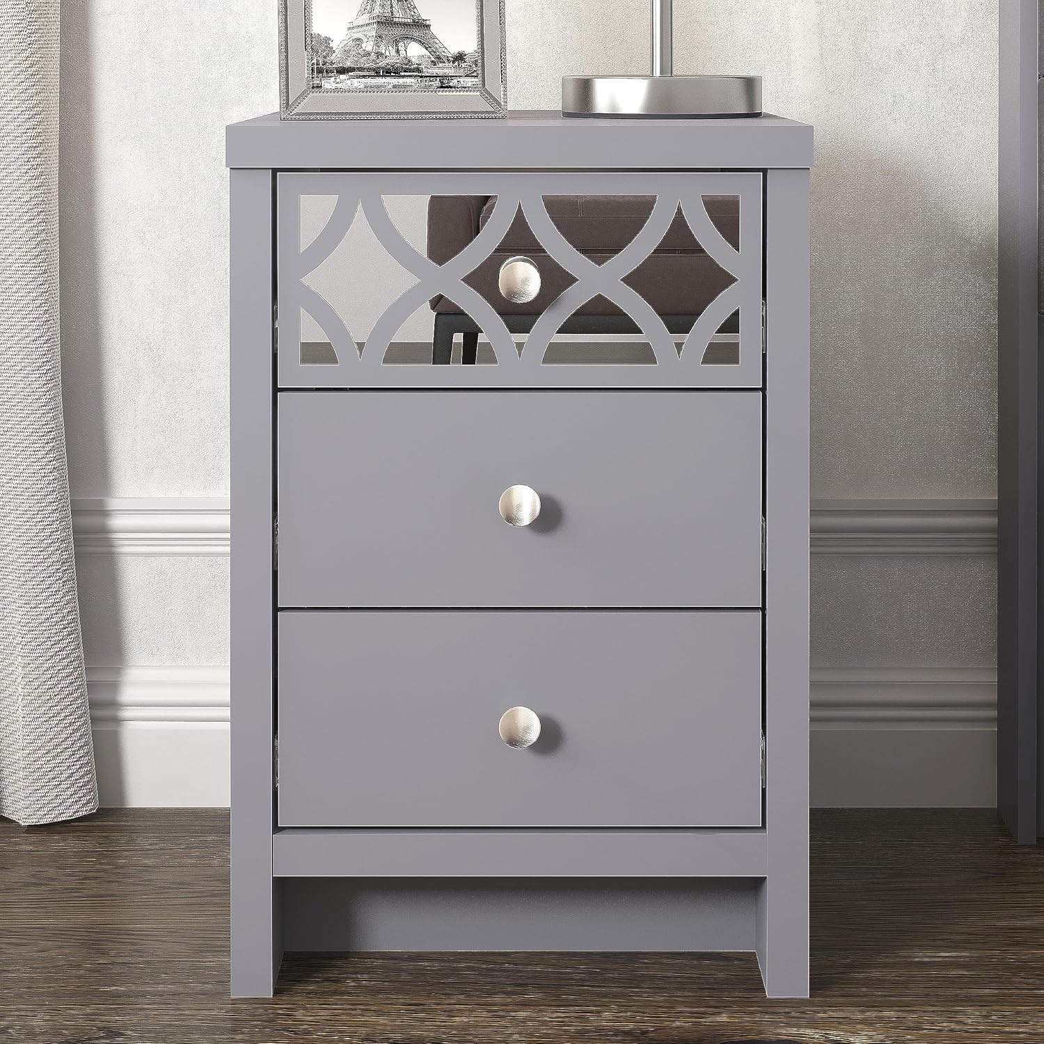 Galano Iris 3 Drawer Bedside – Modern Cabinet with 1 Mirrored Drawers – Organizers and Storage for Bedroom – Console for Entryway – Hallway or Living Room – Grey