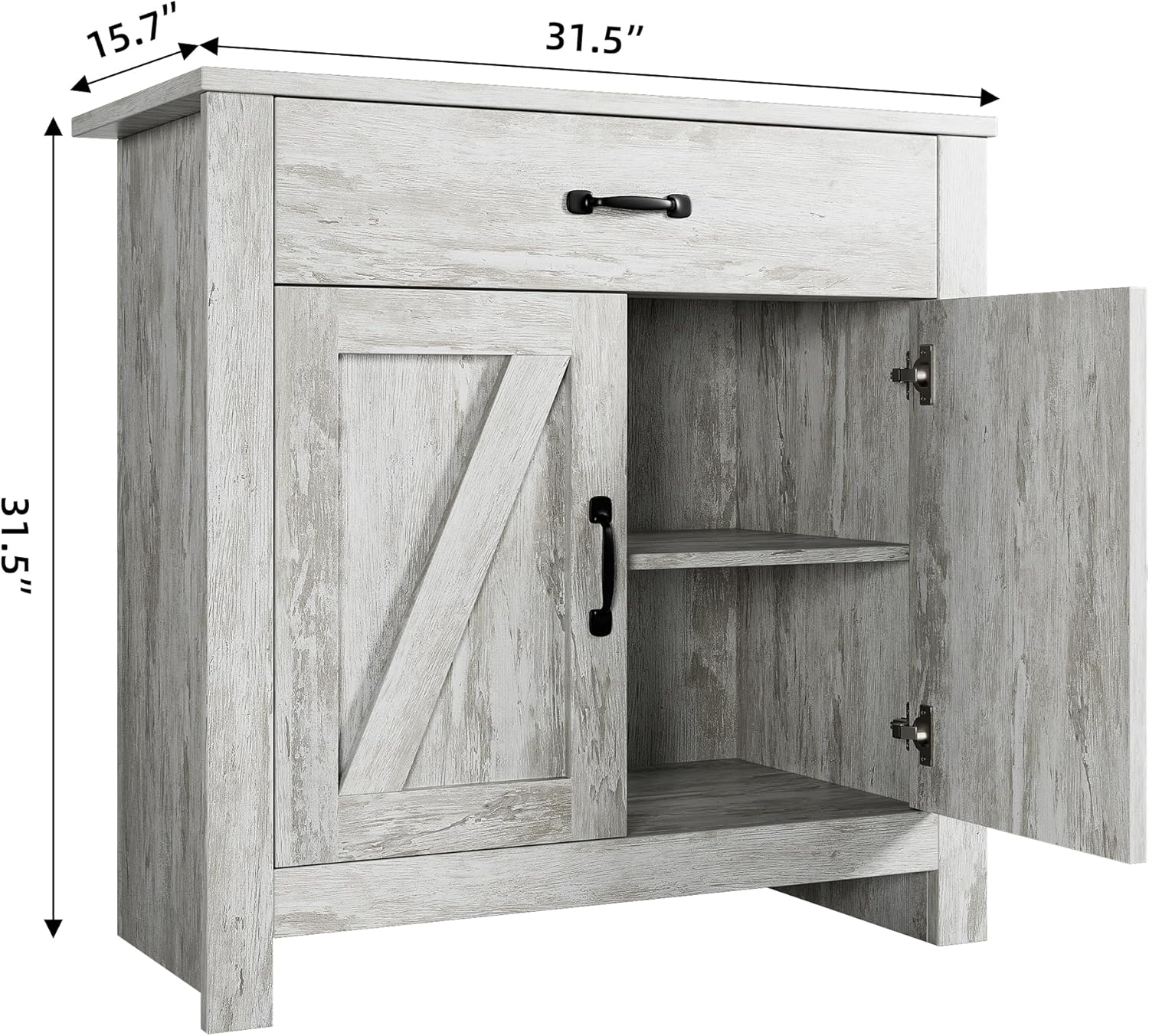 Sturdy Structure: Built from premium manufactured wood and hardware, the buffet cabinet promises a sturdy structure with impressive stability and durability. Tabletop can support up to 300 lbs, overall dimensions: 15.7″D x 31.5″W x 31.5″H.