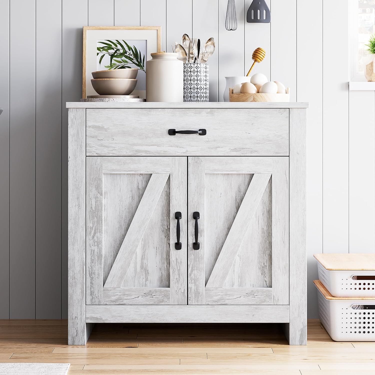 Remarkable Ample Storage: The buffet cabinet showcases a wide 31.5inch tabletop, perfect for placing your coffee maker and microwave oven, while two double-door cabinets can easily accommodate all your daily kitchen utensils.