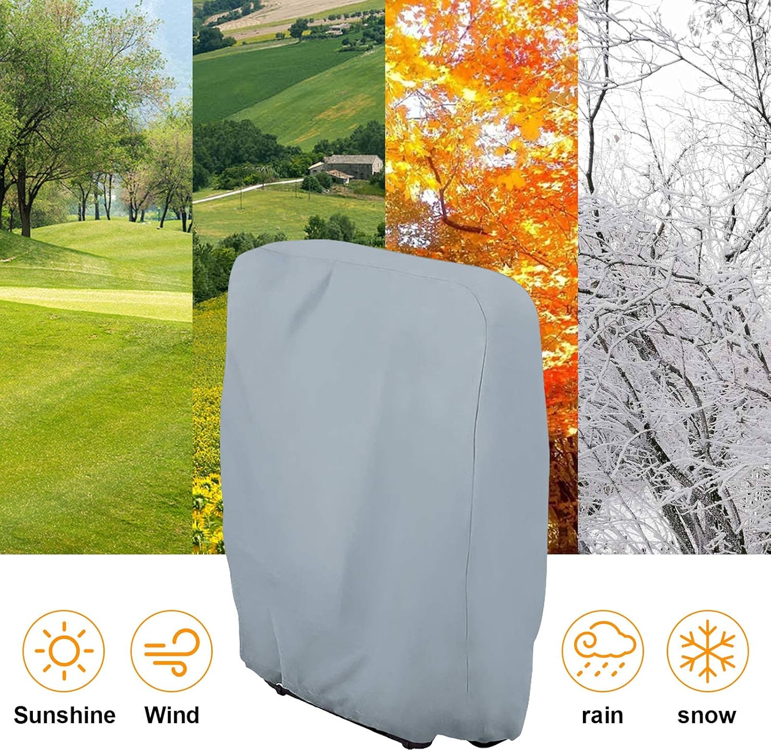 【Windproof & UV-resistant】 – the patio folding chair cover is particularly lightfast. The black or grey color is retained even with long exposure to sunlight. There is a drawstring to tighten up the opening to ensure protection on the windiest days. Easily stowed away to protect against unpleasant weather conditions