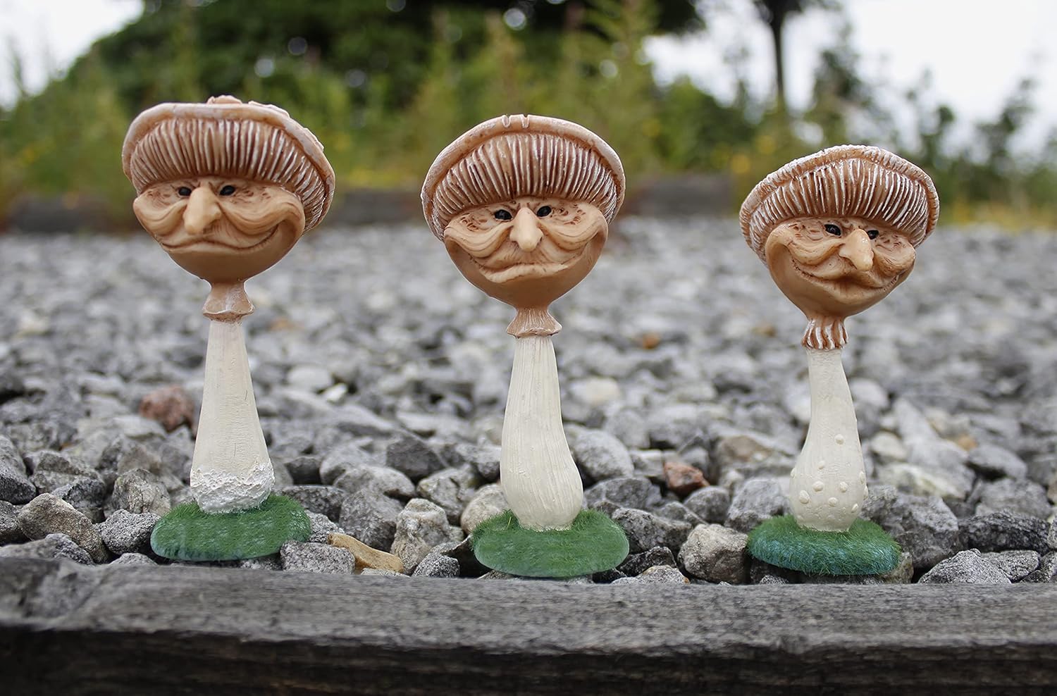 Garden Mile Novelty Resin Miniature Mushroom Garden Ornaments Outdoor Fully Weatherproof and Eye Catching Mini Character Garden Statue for Indoor and Outdoor Patio, Pond, Bedding Decor – Set of 3