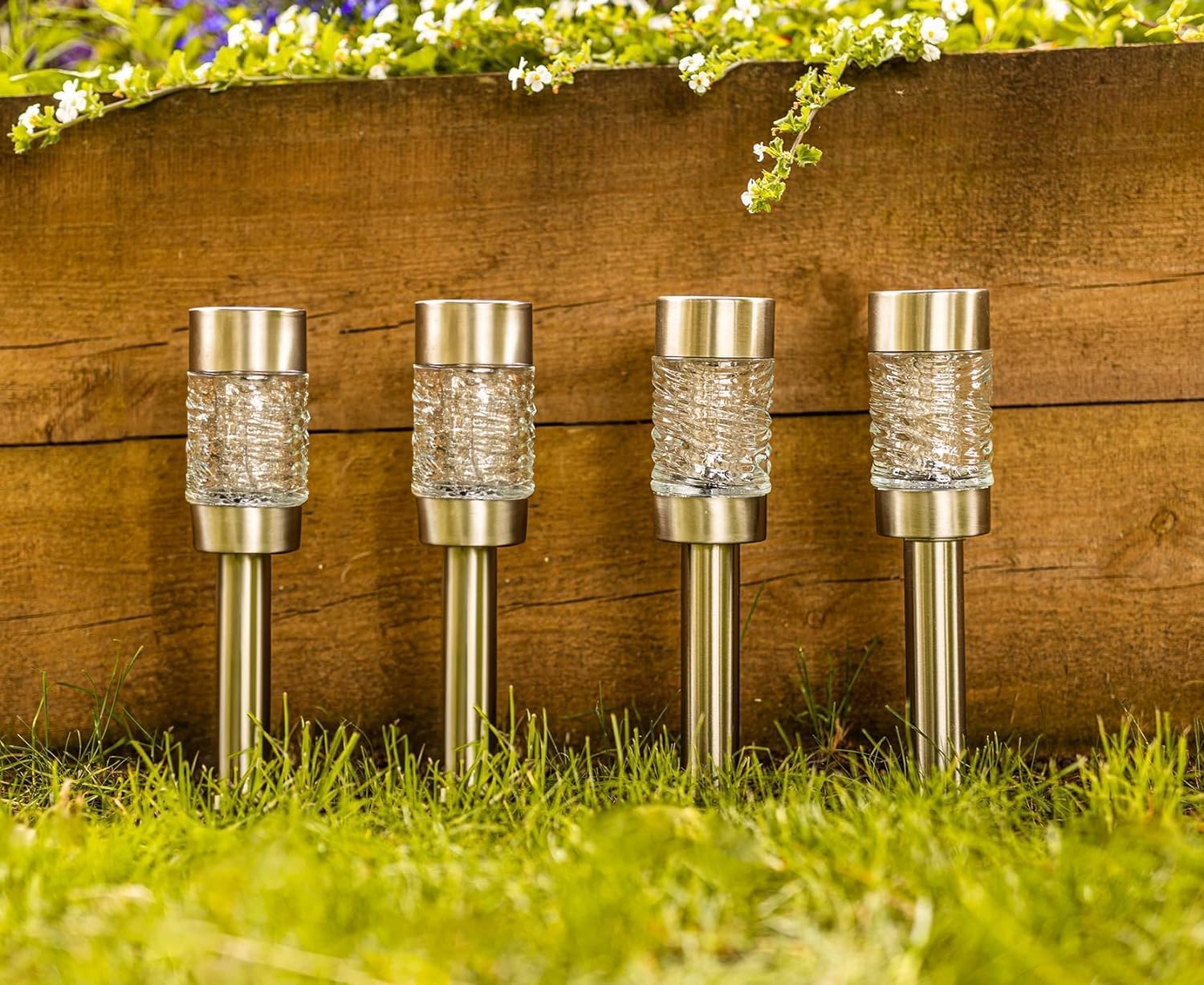 Garden Mile Solar Stake Outdoor Lights Wave Effect Stainless Steel Bollard Lights (Martini, 4)