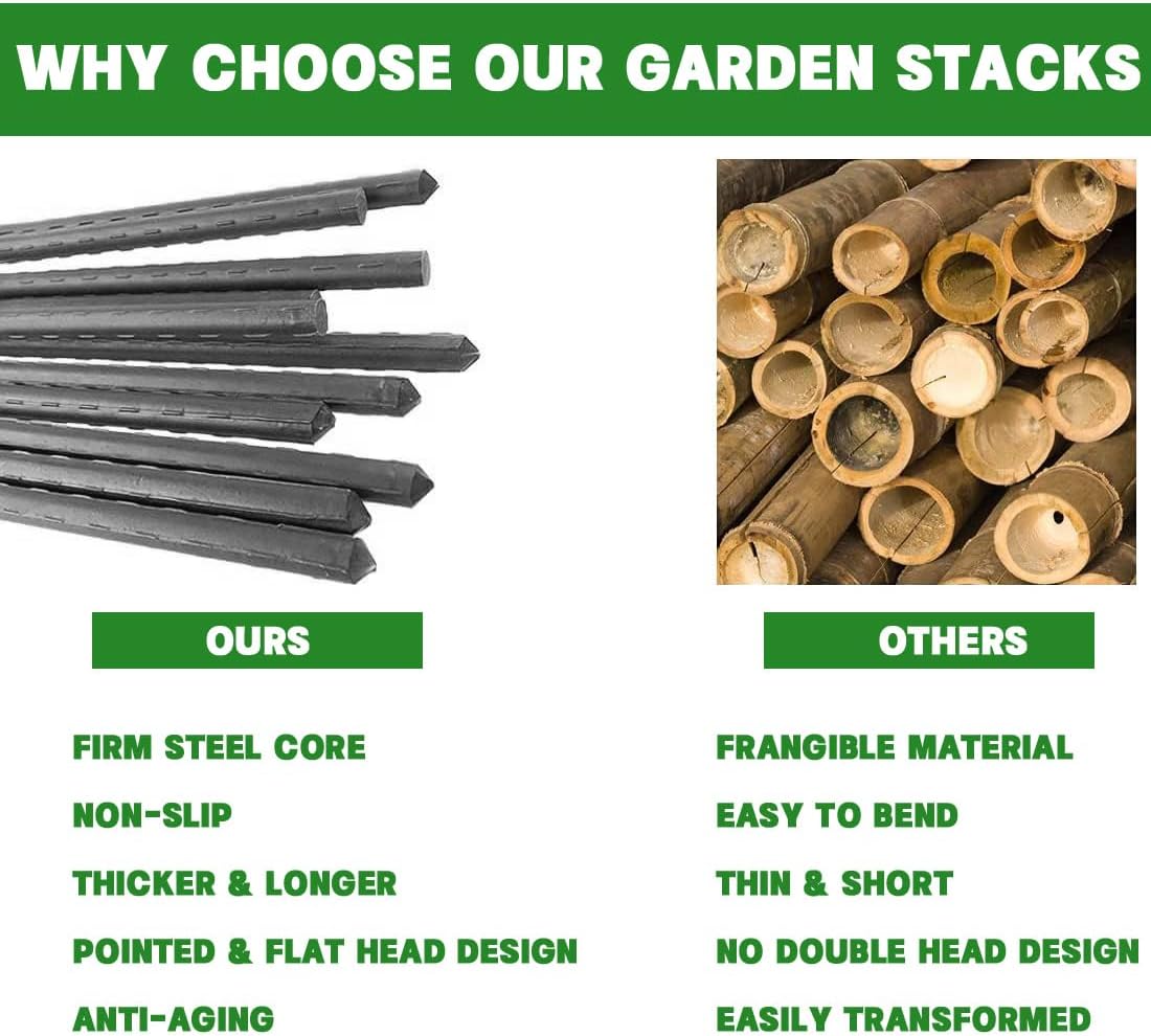 Perfect Size: 11mm diameter, 42cm high. Each package contains 20 Pcs sturdy garden stakes for plants.