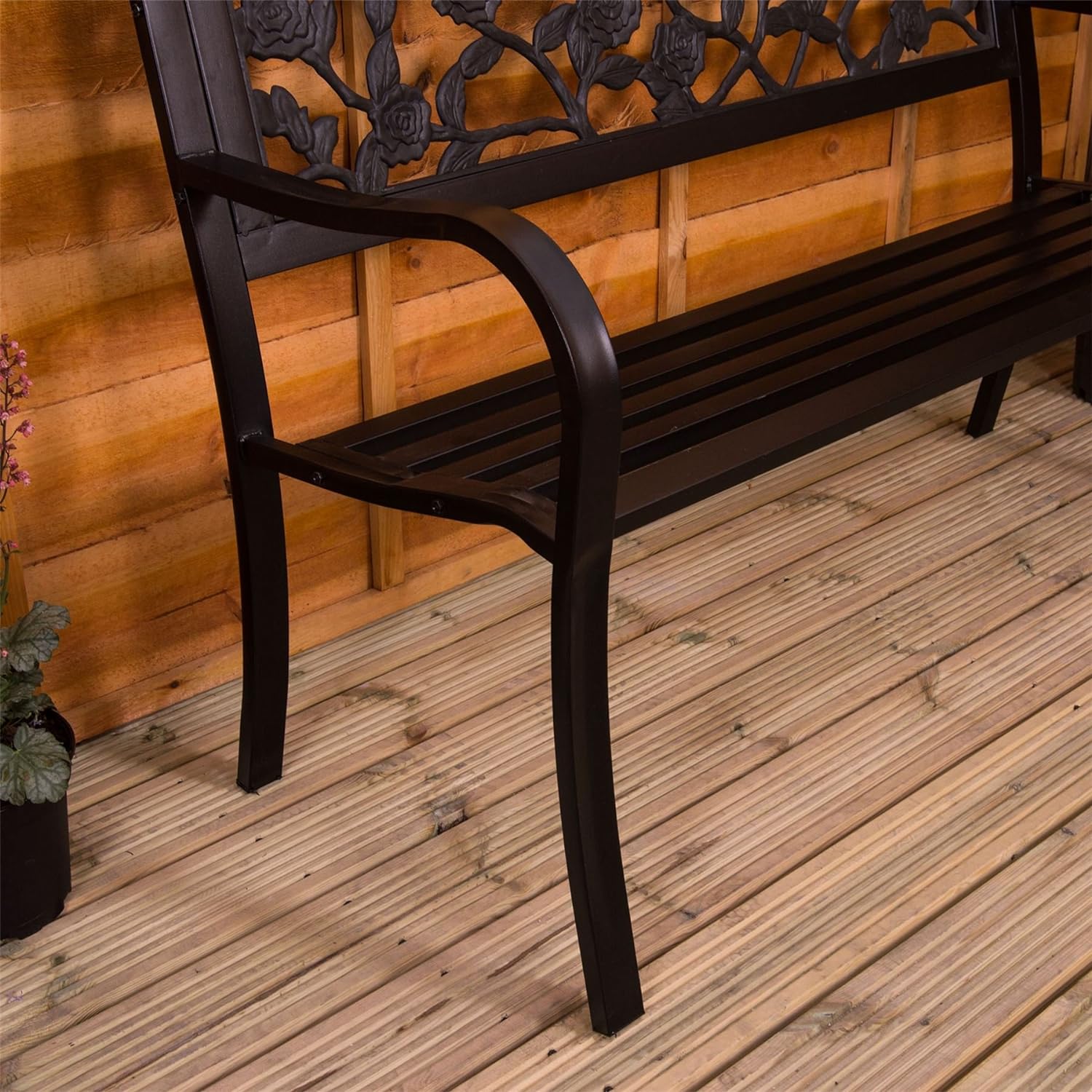 Garden Vida Steel Garden Bench, Rose Design 3 Seater Outdoor Furniture Seating Park Patio Seat
