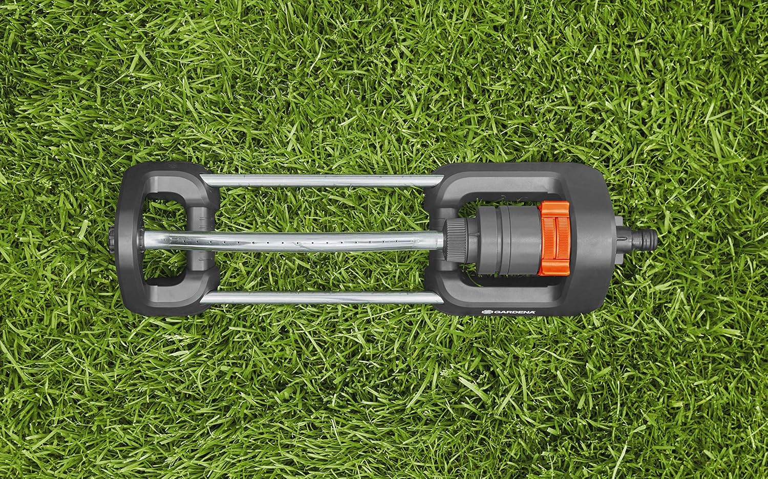 Gardena Aqua S oscillating sprinkler: Lawn sprinkler for watering areas of 90–220 m², range 7–17 m, spread max. 13 m, built-in metal filter (18700-20)